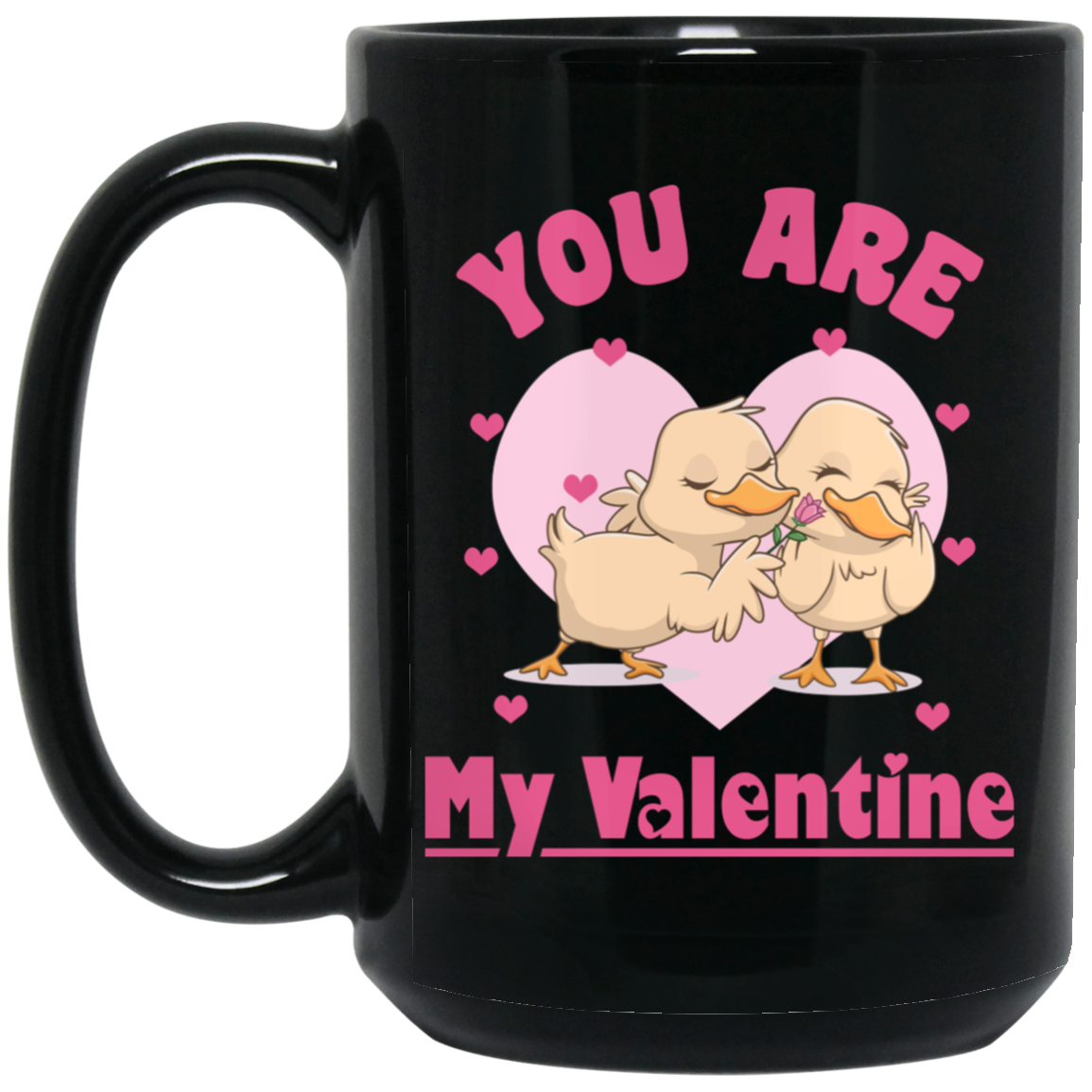 You Are My Valentine, Cute Chicks, Chick Couple, Pink Heart Black Mug