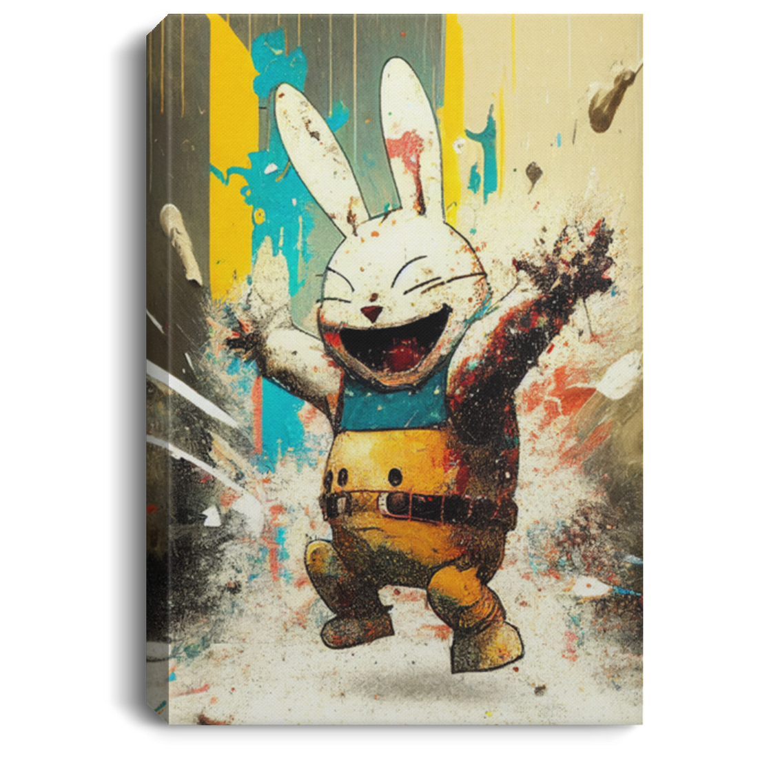 Fun Rabbit, Happy Rabbit Art, Rabbit Anime, Retro Material Canvas