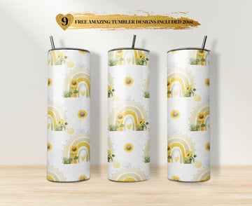 20 oz & 30 oz Skinny Tumbler Sublimation Designs, Sunflowers Love Yellow Rainbow Love Of Life Tumbler - PNG Digital Download
