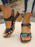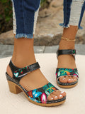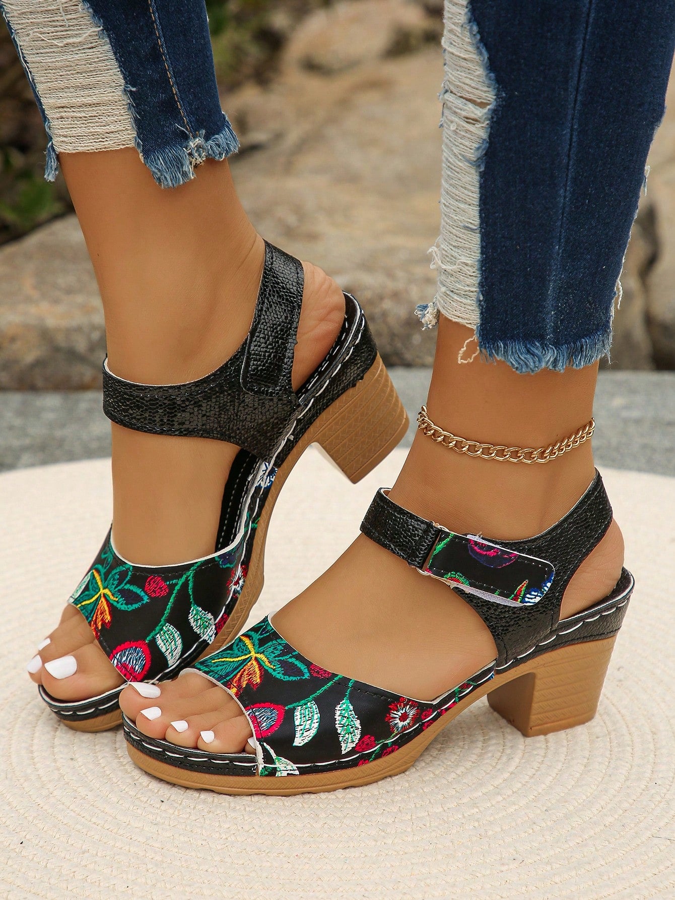 Sandals. Adorned with beautiful floral decorations, these sandals add a touch of elegance to any outfit. With a comfortable high heel, these sandals will keep you looking stylish while providing support. Perfect for any occasion"