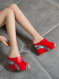 2024 Summer Chic: High-Heeled Waterproof Platform Slippers with Color-Blocking Design
