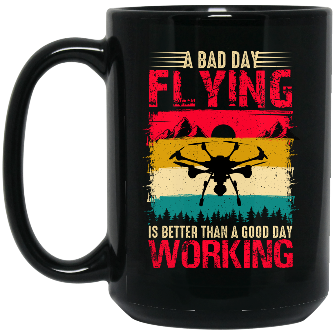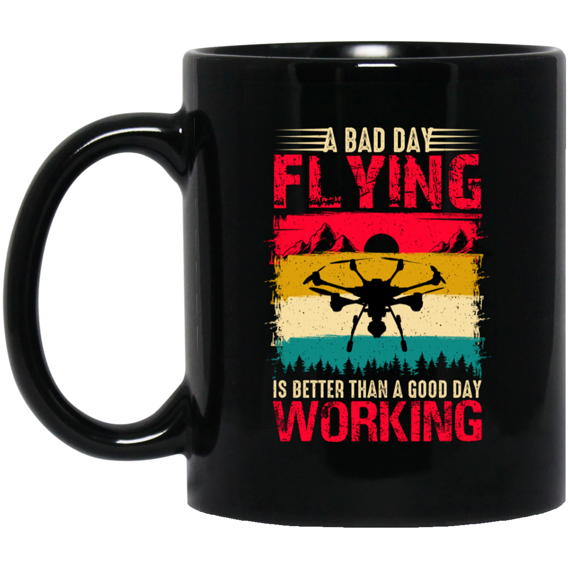 A Bad Day Flying Is Better Than A Good Day Working, Retro Drone, Retro Flying Black Mug