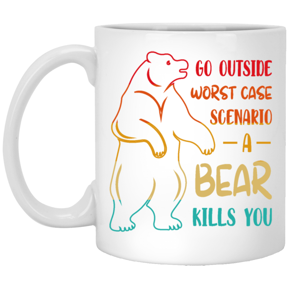 A Bear Kills You Exclusive Apparels Go Outside Worst Case Scenario White Mug