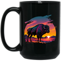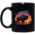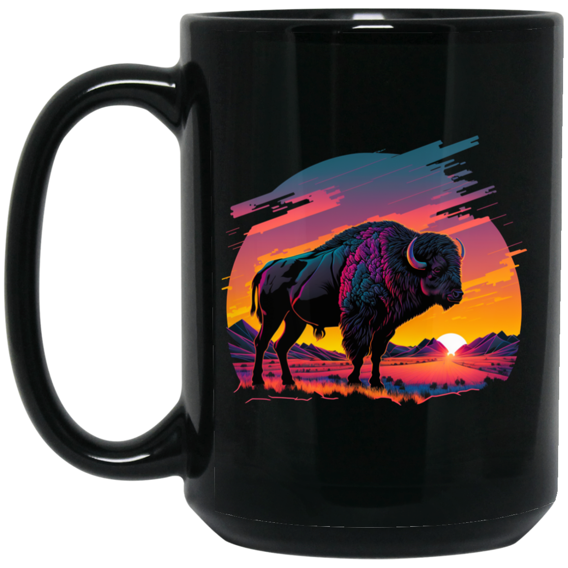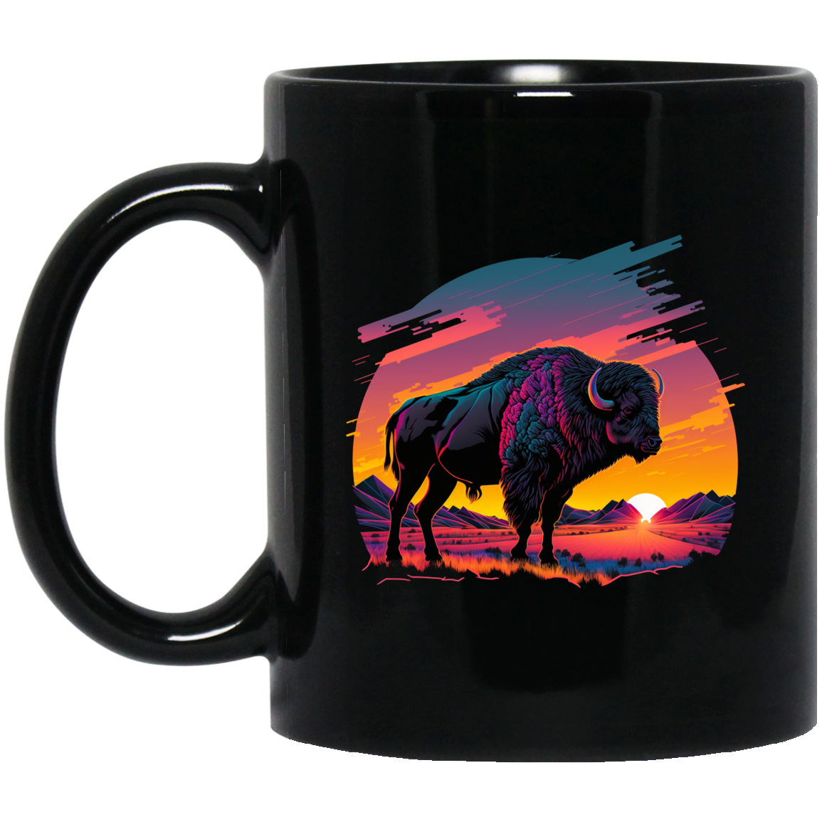 A Bison In Front Of The Sunset, Neon Style, Smooth Lines, Best Of Cow Black Mug
