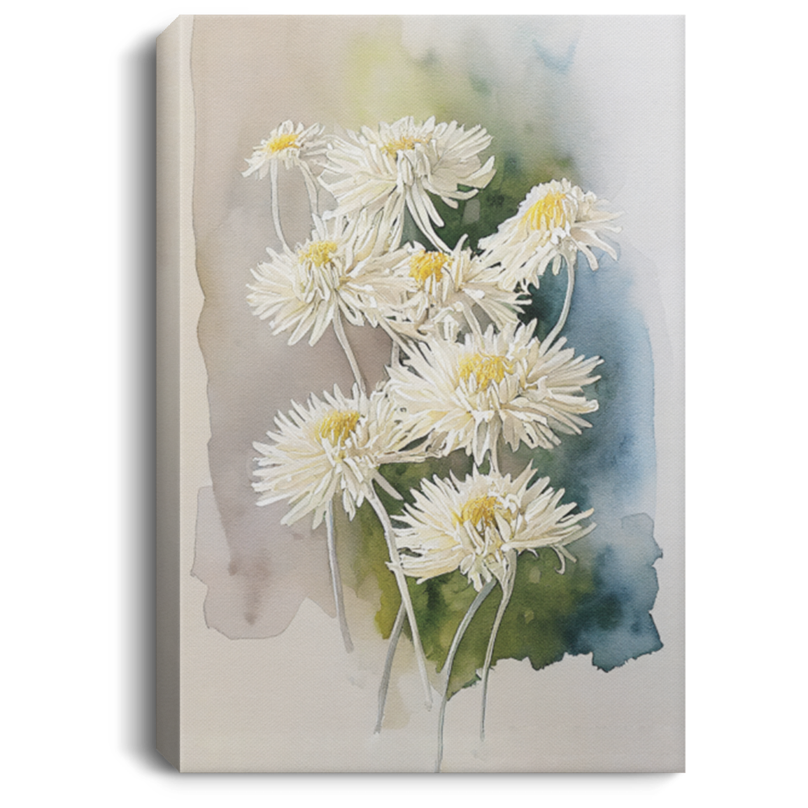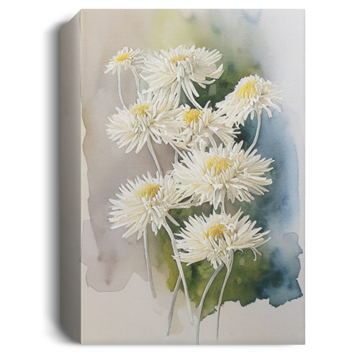 This vibrant watercolor painting captures the beauty of a bunch of blooming chrysanthemum flower in all its life-like detail. Perfect for any room in the house, this canvas d??cor will also make a great gift for any flower-lover. Easy to hang, it is sure to add a vibrant touch to any space.