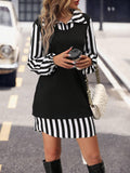A Chic and Versatile Addition to Your Wardrobe with Striped Print Lantern Sleeve 2-In-1 Dress