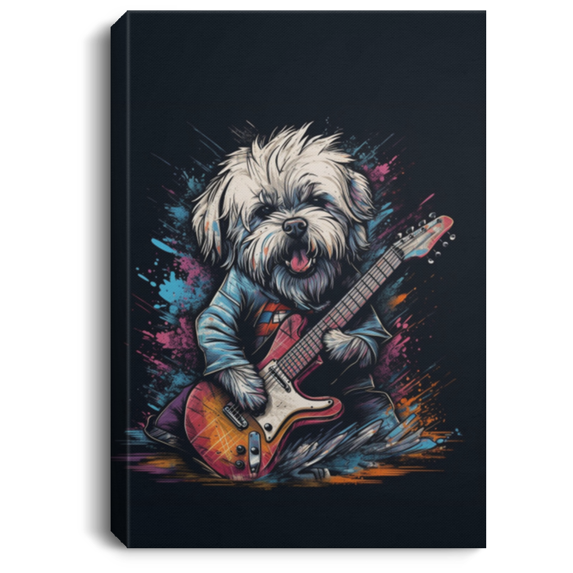 A Coton De Tulear Dog As A Rocker Playing Electric Guitar, Rock Music Canvas