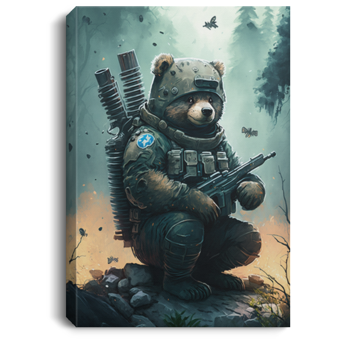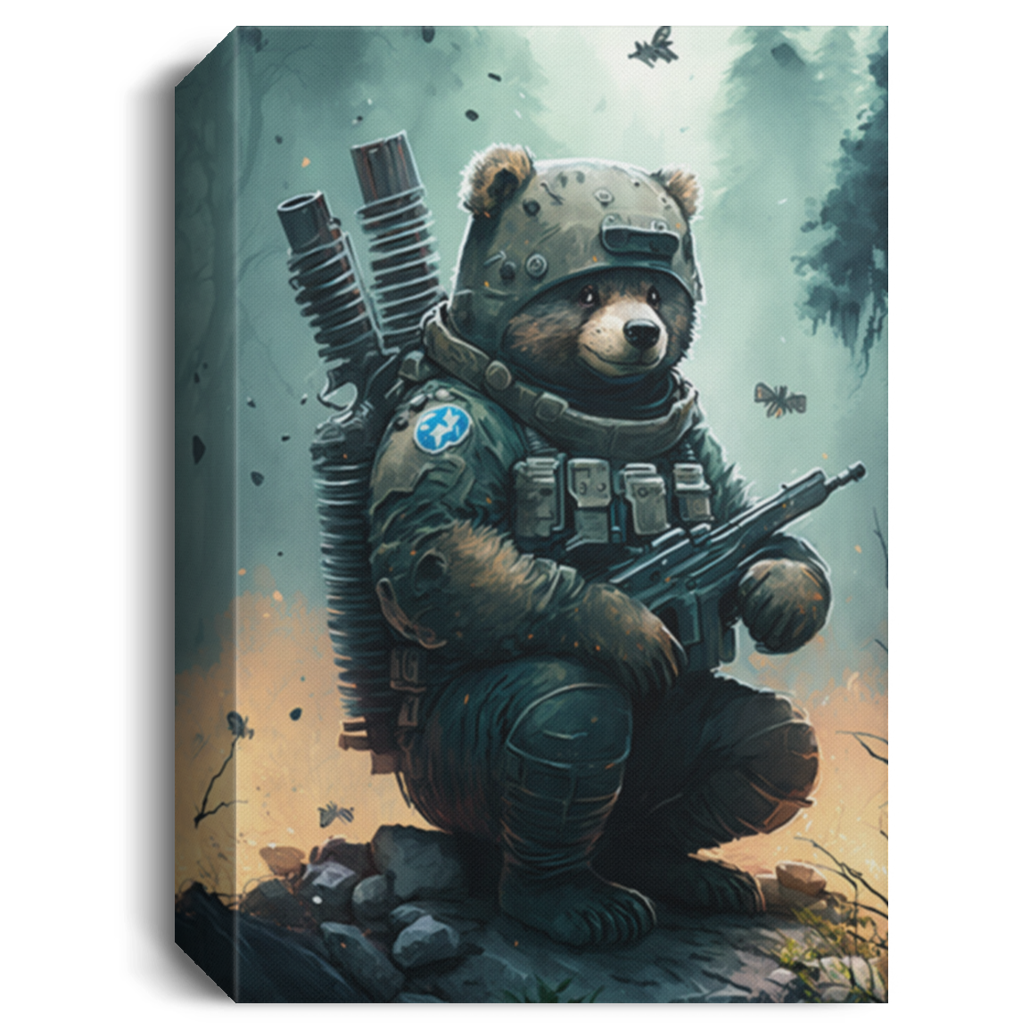 A Cute Bear With A Solemn Expression In A World, Bear Soldier Canvas