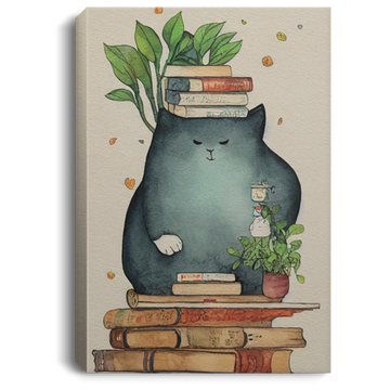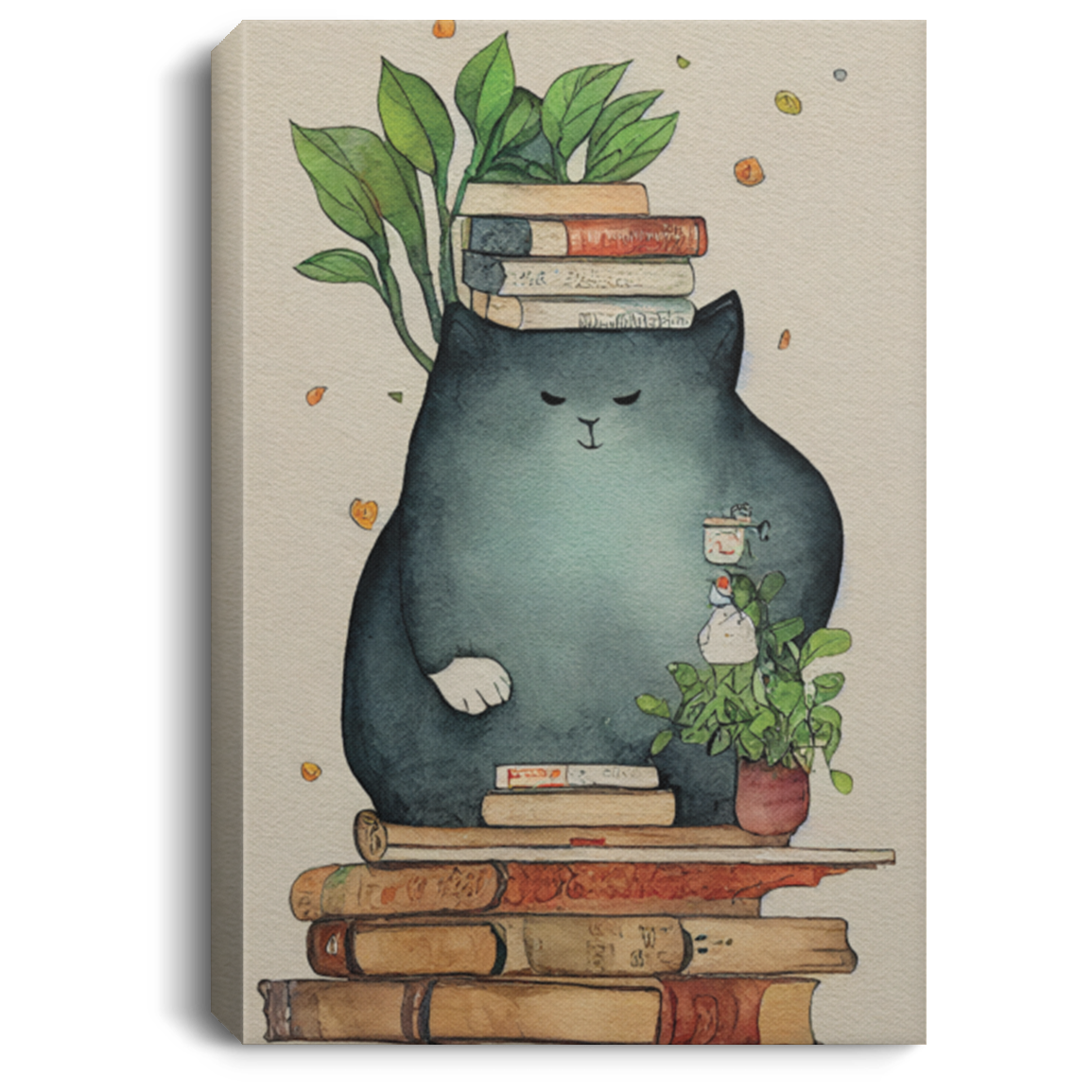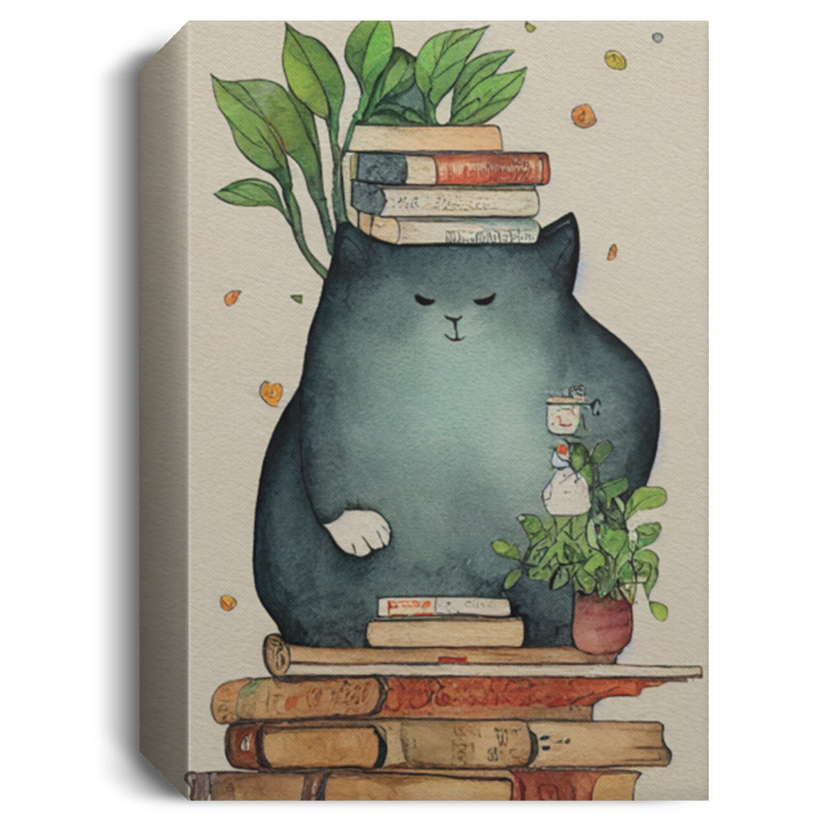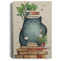 A Giant Cozy Cat With Books And House Plants And Jars And Mushroom, Anime Cat, Read Book, Bookworm