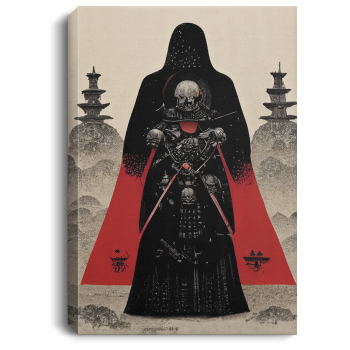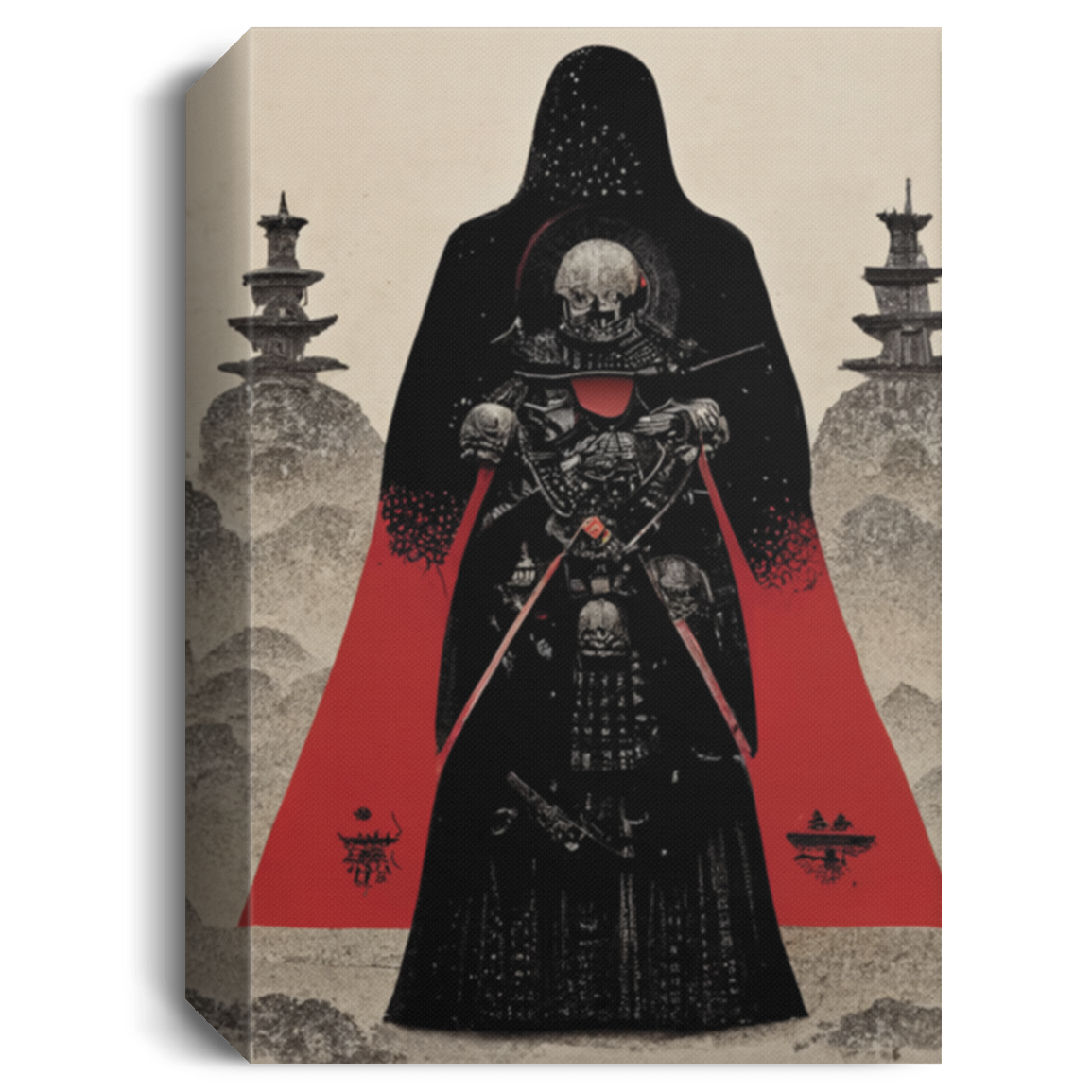 A Warrior Samurai Skull Vader Fantasy Style Tarot Card Red Black Grey, Japanese Samurai And The War