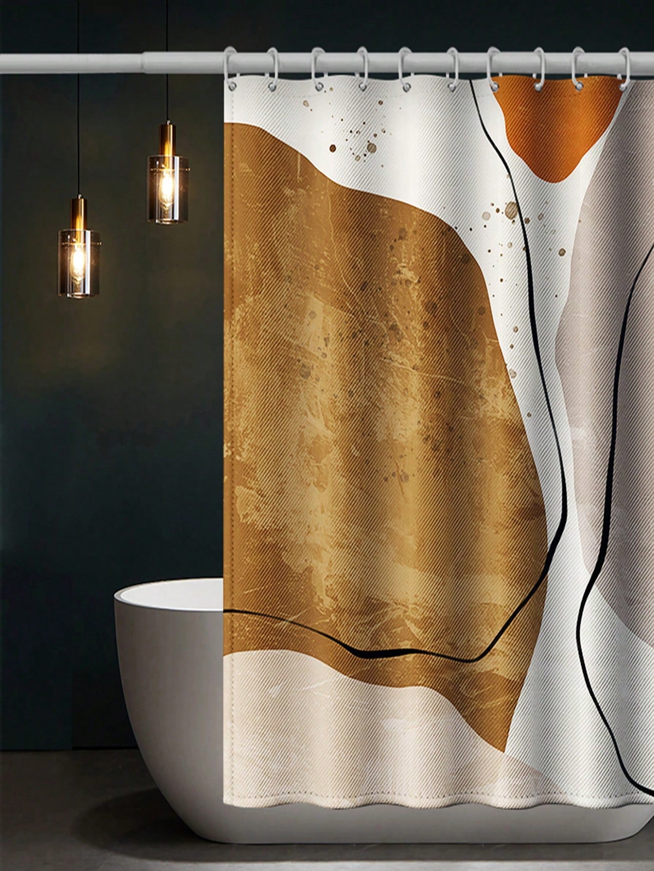 Abstract Art Style Water and Mildew-Proof Shower Curtain Set with Hooks - Home and Outdoor Decor