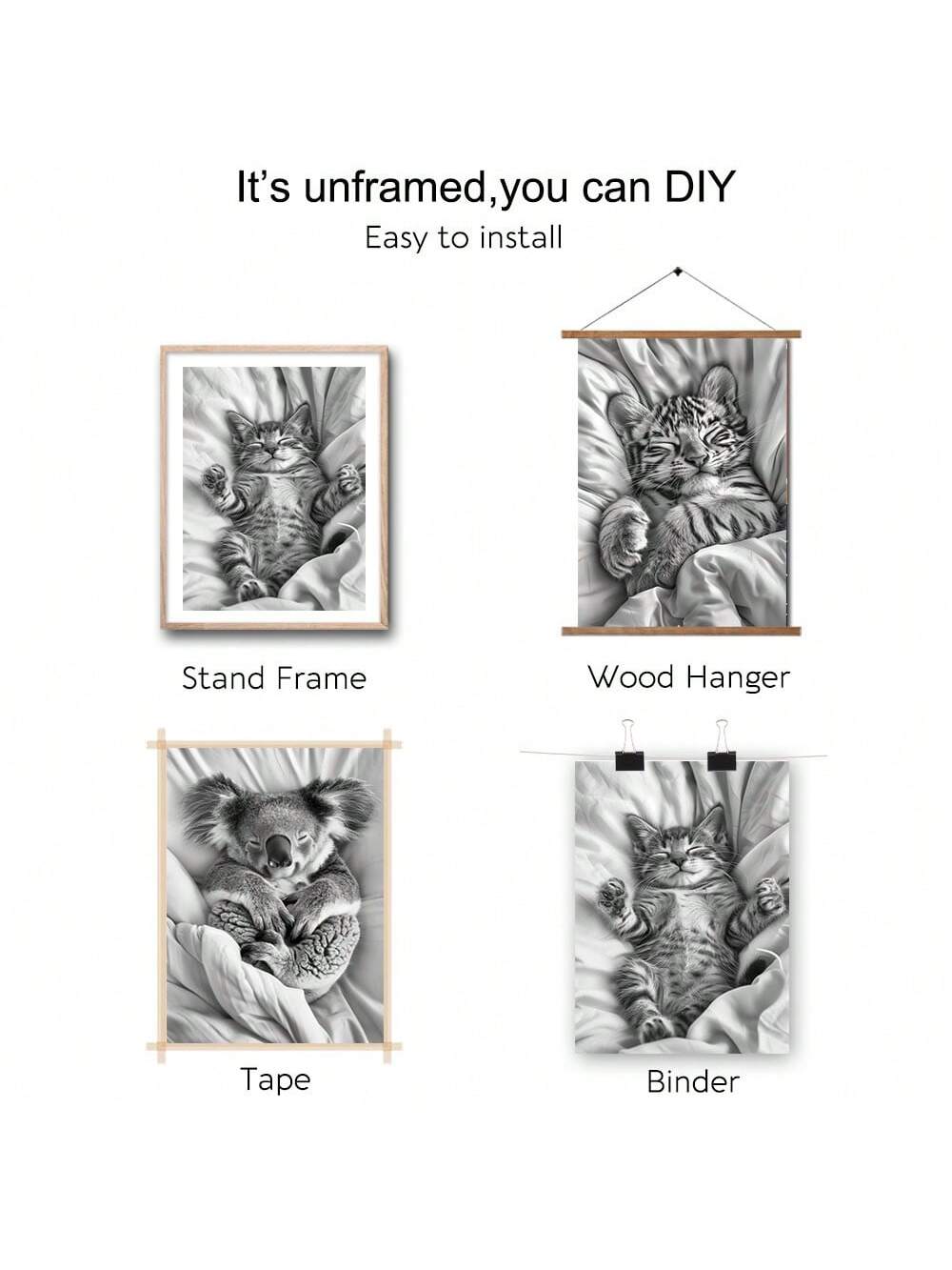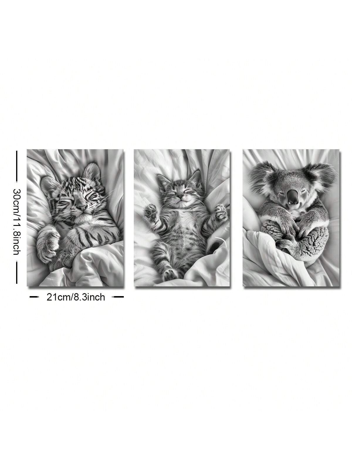 Adorable Animal Art Trio: Tiger, Cat, and Koala Canvas Wall Prints - Perfect for Dorms, Bedrooms, and Home Decor