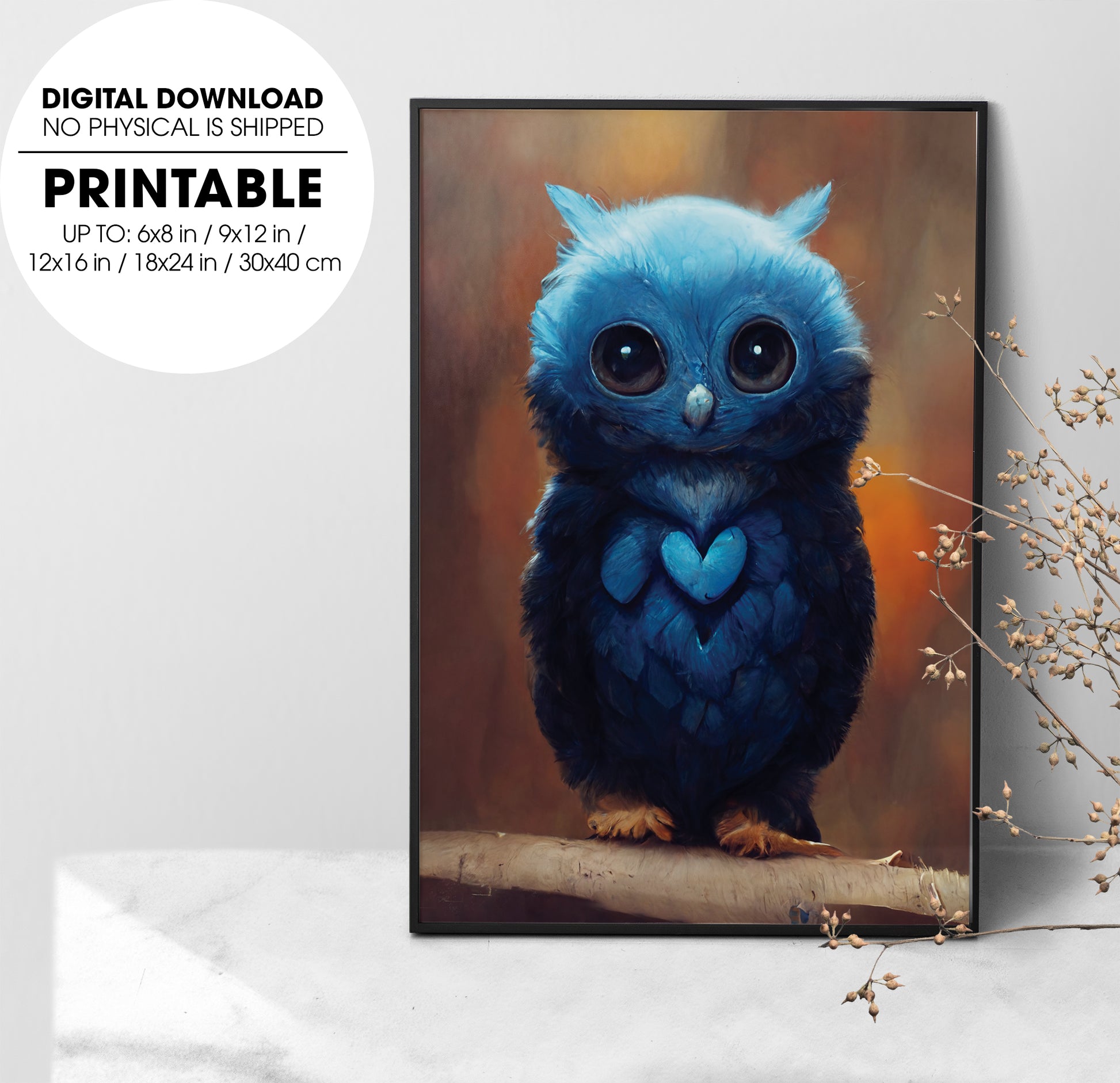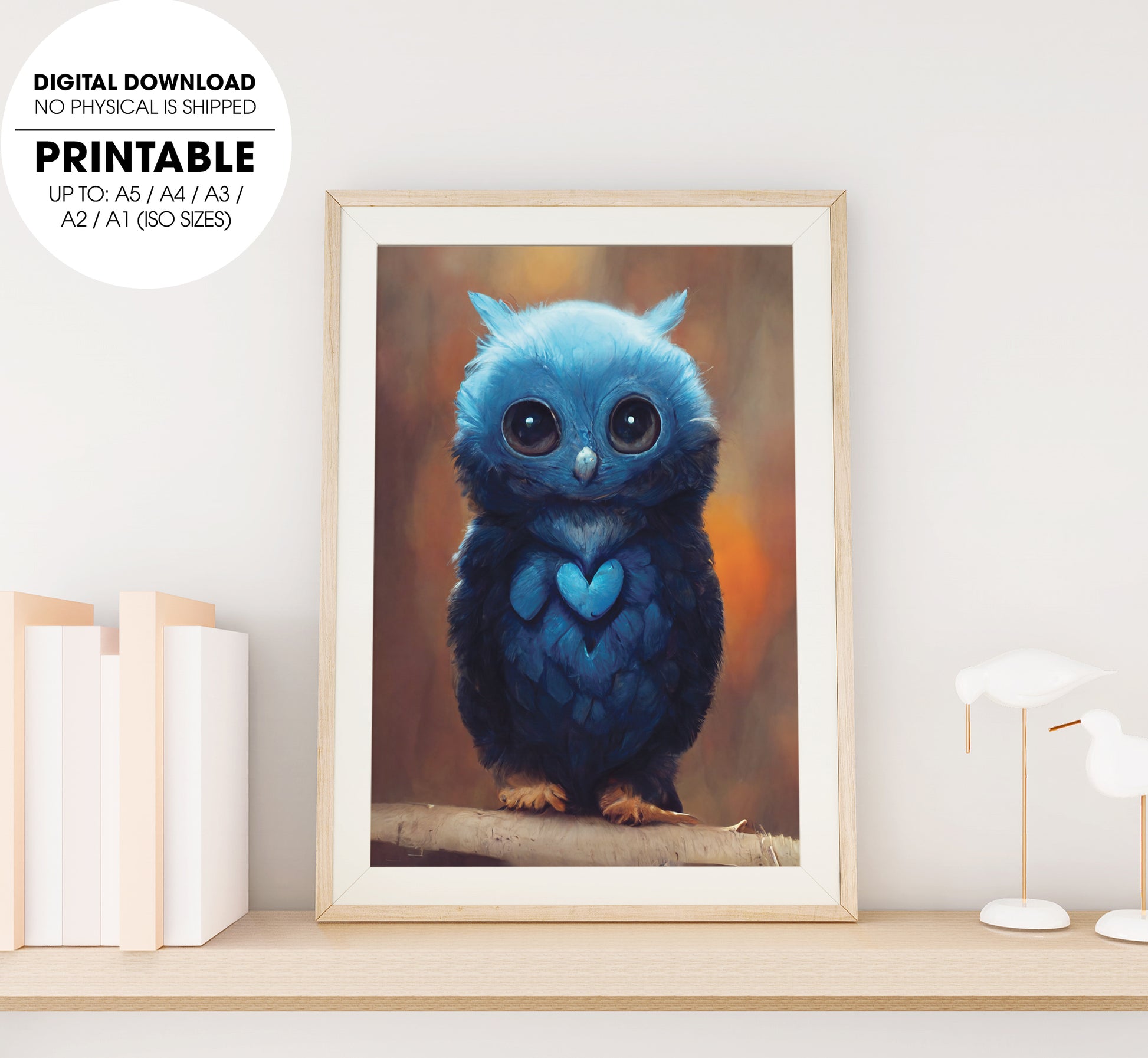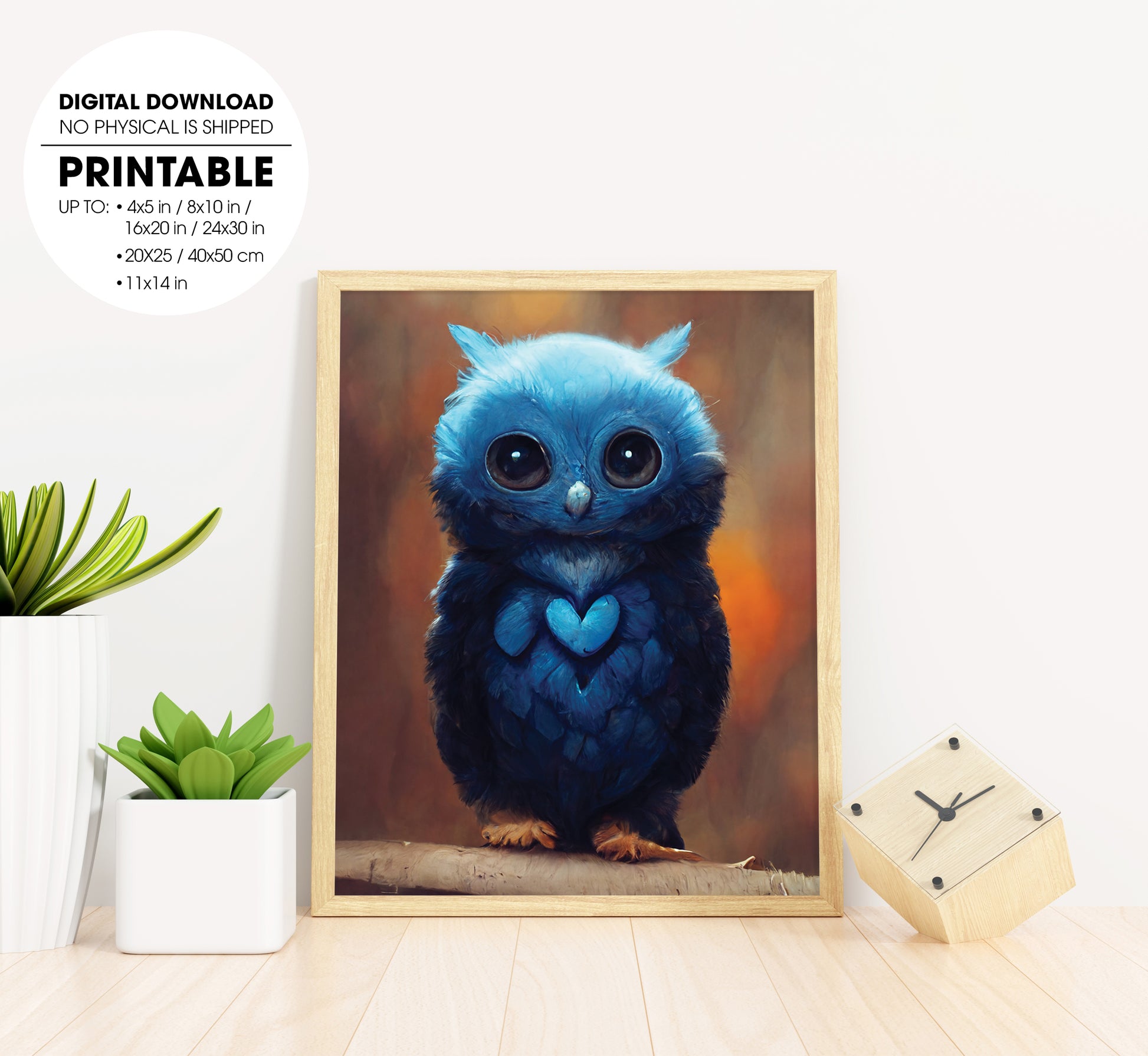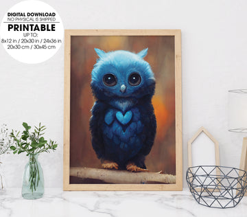 Adorable Blue Owl, So Cute Little Owl, Love The Blue Or The Owl, Poster Design, Printable Art