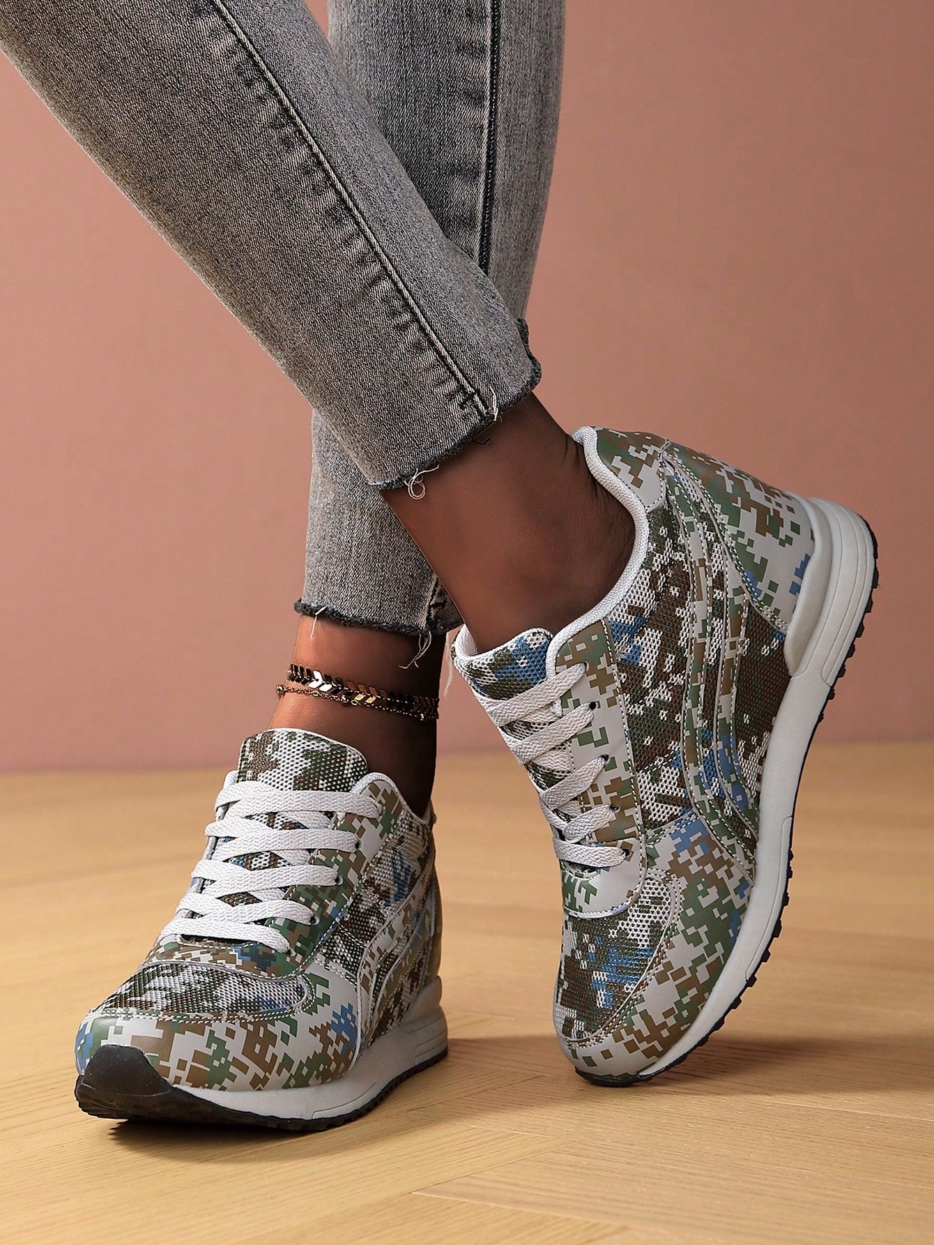 Sneakers. The breathable mesh material keeps your feet cool and comfortable, while the platform design adds a touch of height without sacrificing stability. Perfect for any casual occasion, these sneakers are a must-have for any fashion-forward woman."