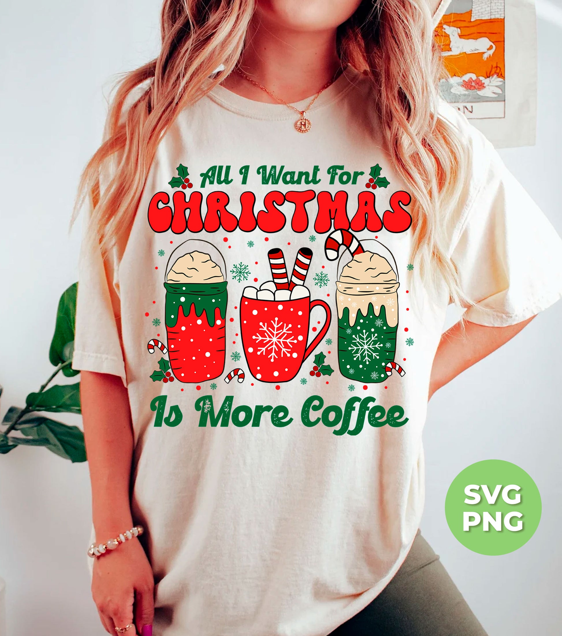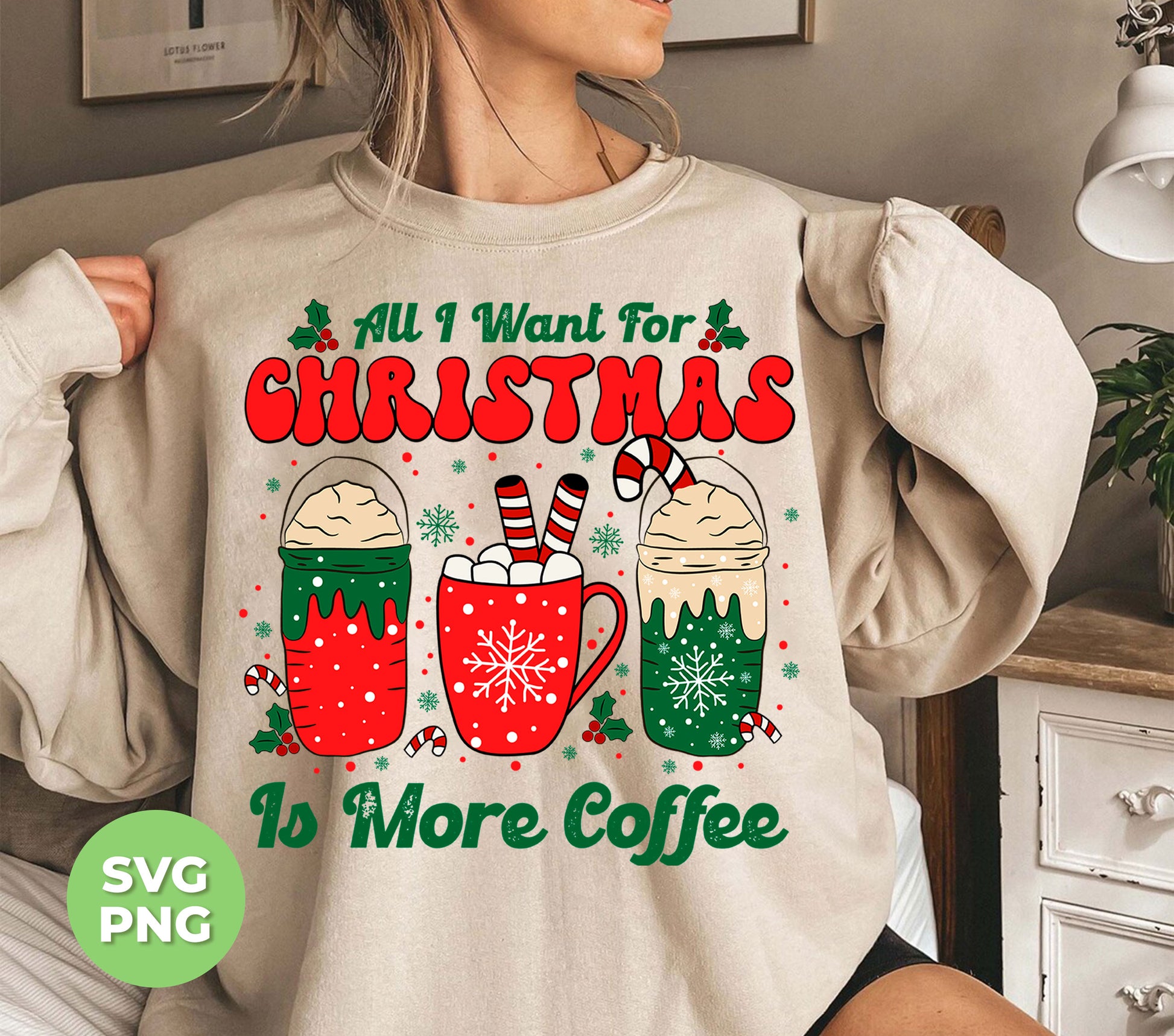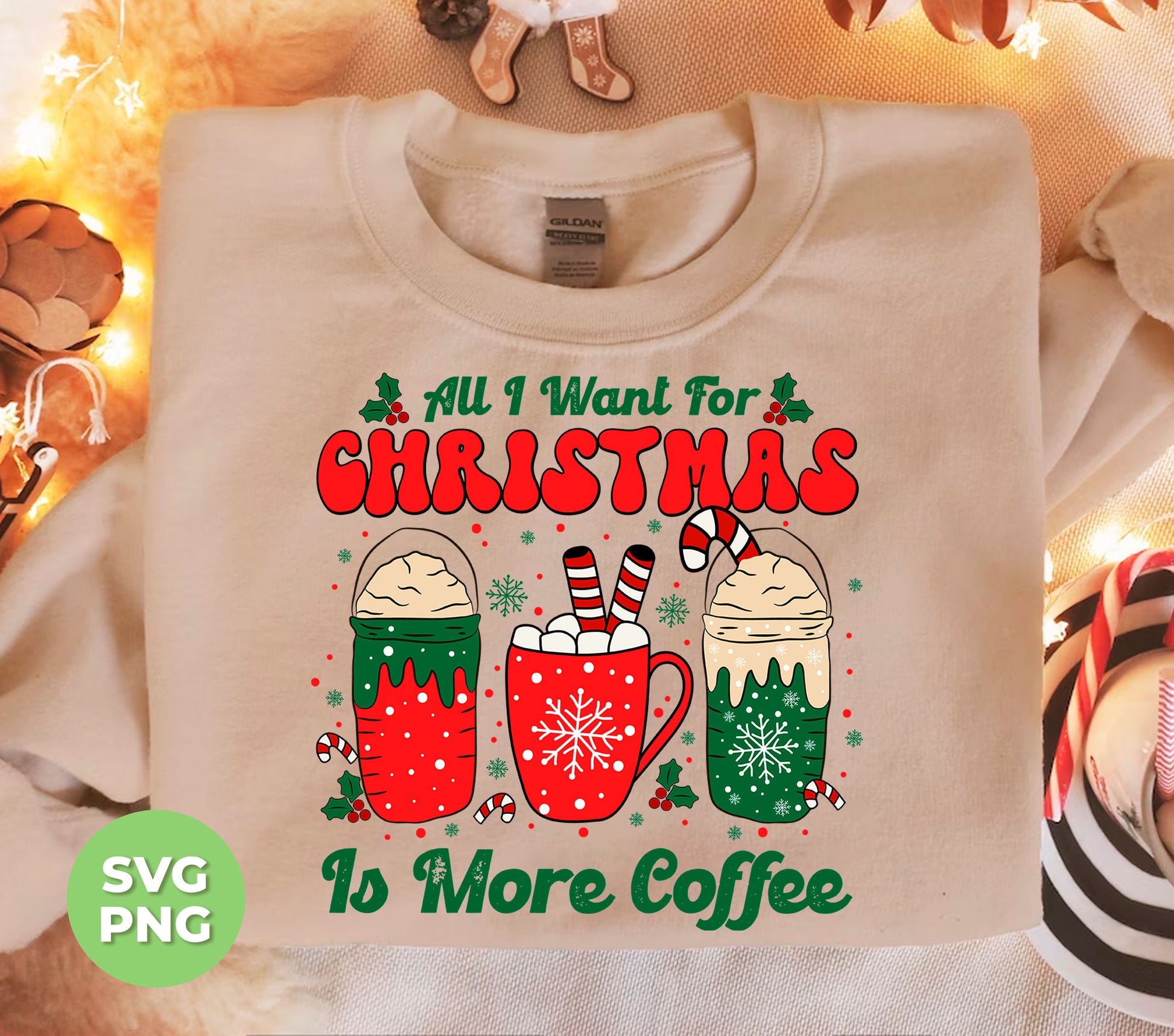 All I Want For Christmas Is More Coffee, Coffee Lover, Coffee In Xmas, Digital Files, Png Sublimation