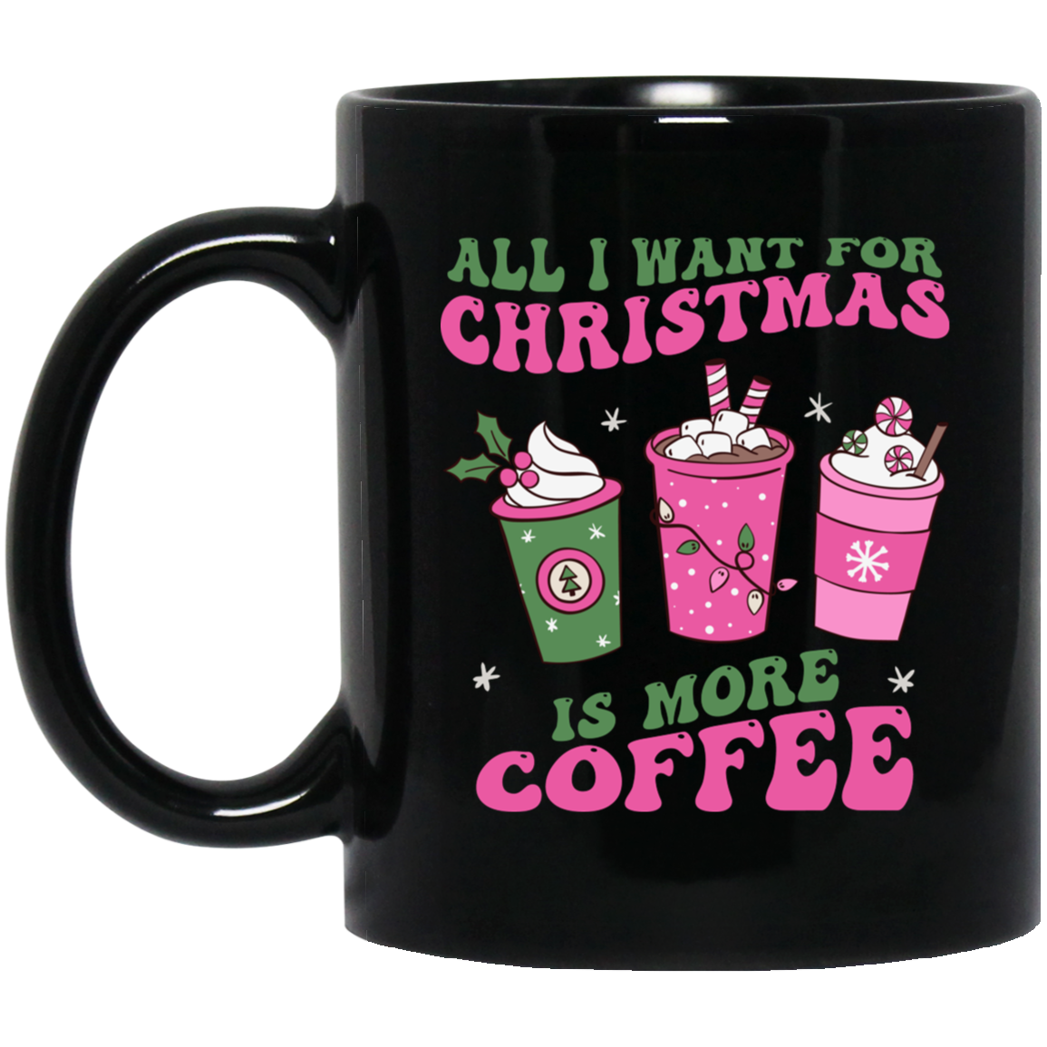 All I Want For Christmas Is More Coffee, Pink Christmas, Merry Christmas, Trendy Christmas Black Mug