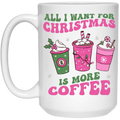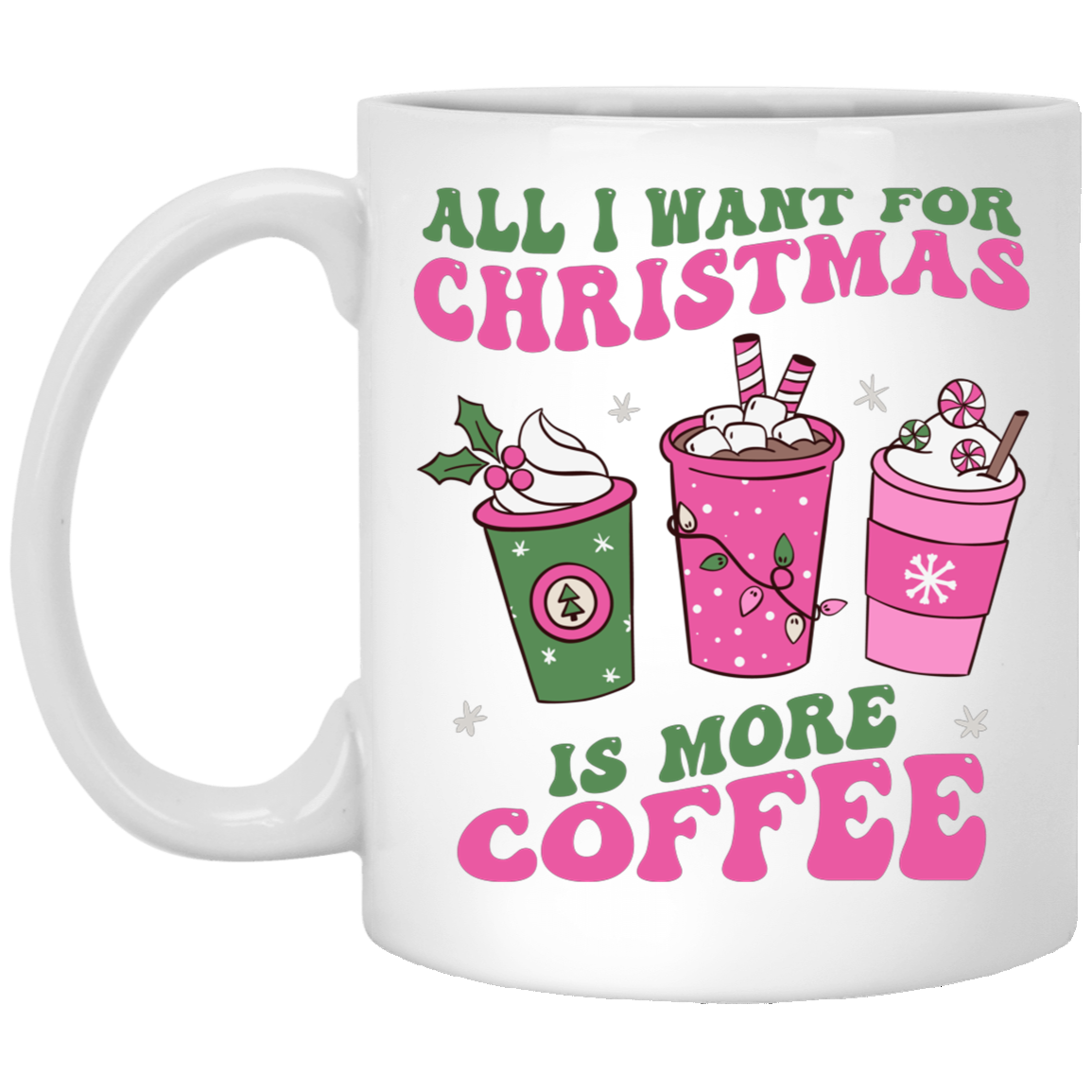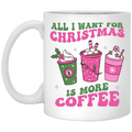 All I Want For Christmas Is More Coffee, Pink Christmas, Merry Christmas, Trendy Christmas White Mug