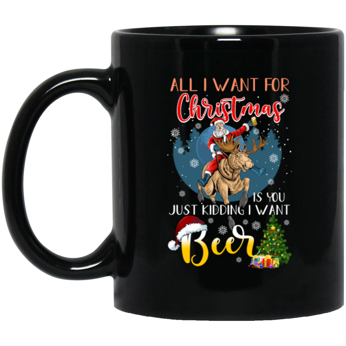 All I Want For Christmas Is You Just Kidding I Want Beer Black Mug