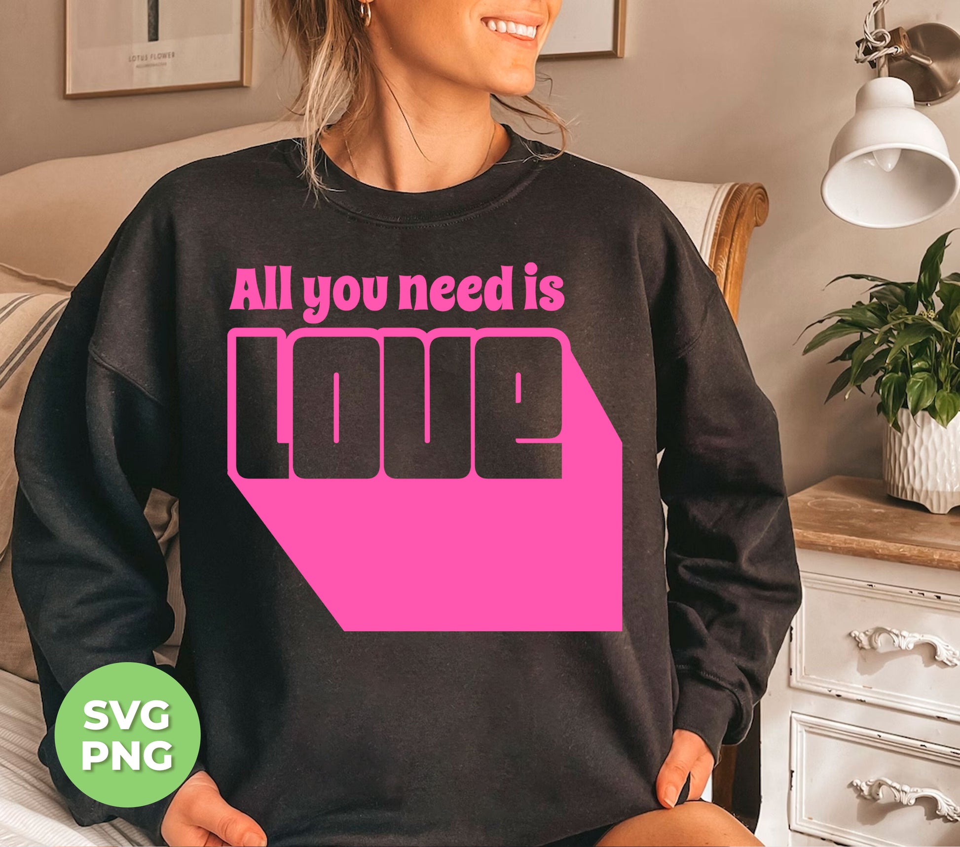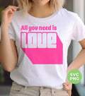 All You Need Is Love, Cute Love, Pink Love, Love Silhouette, Digital Files, Png Sublimation