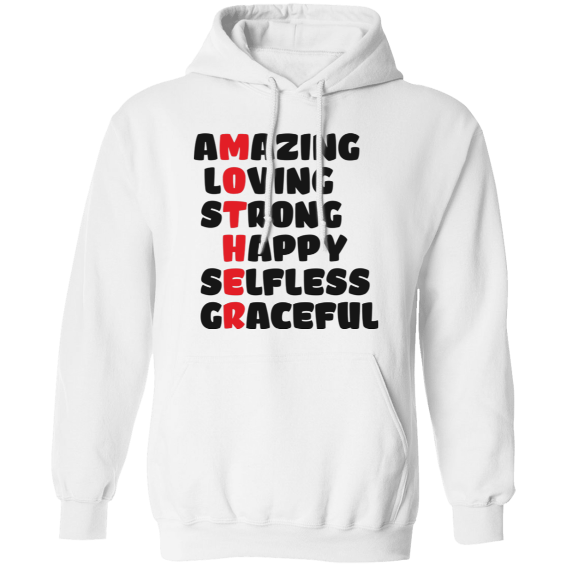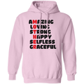 Amazing, Loving, Strong, Happy, Selfless, Graceful, Mother's Day Pullover Hoodie