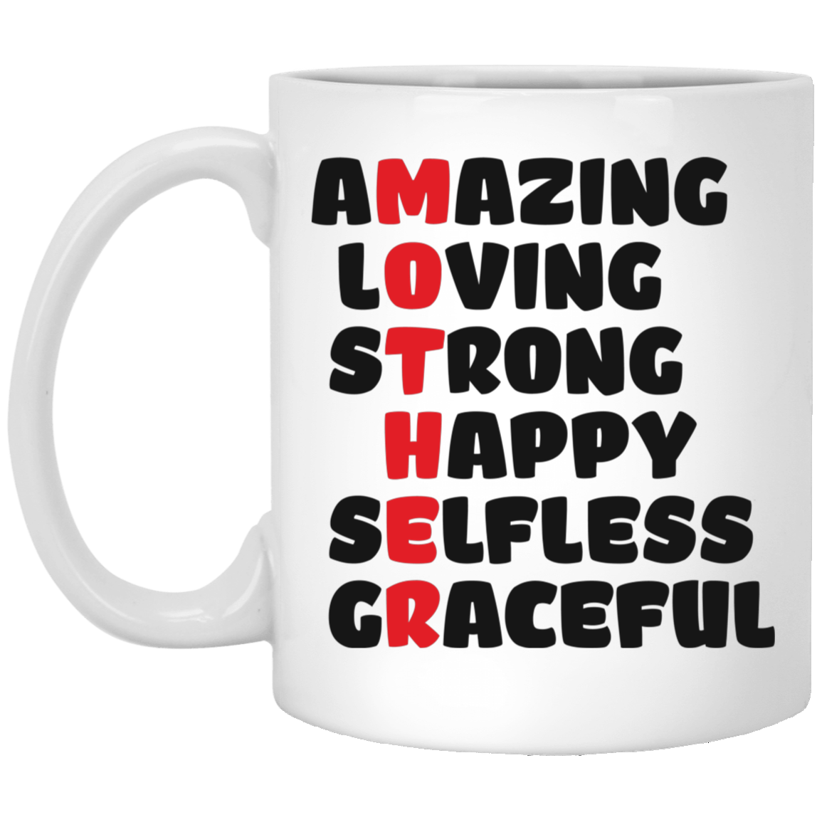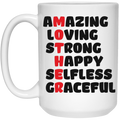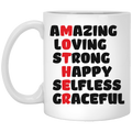 Amazing, Loving, Strong, Happy, Selfless, Graceful, Mother's Day White Mug