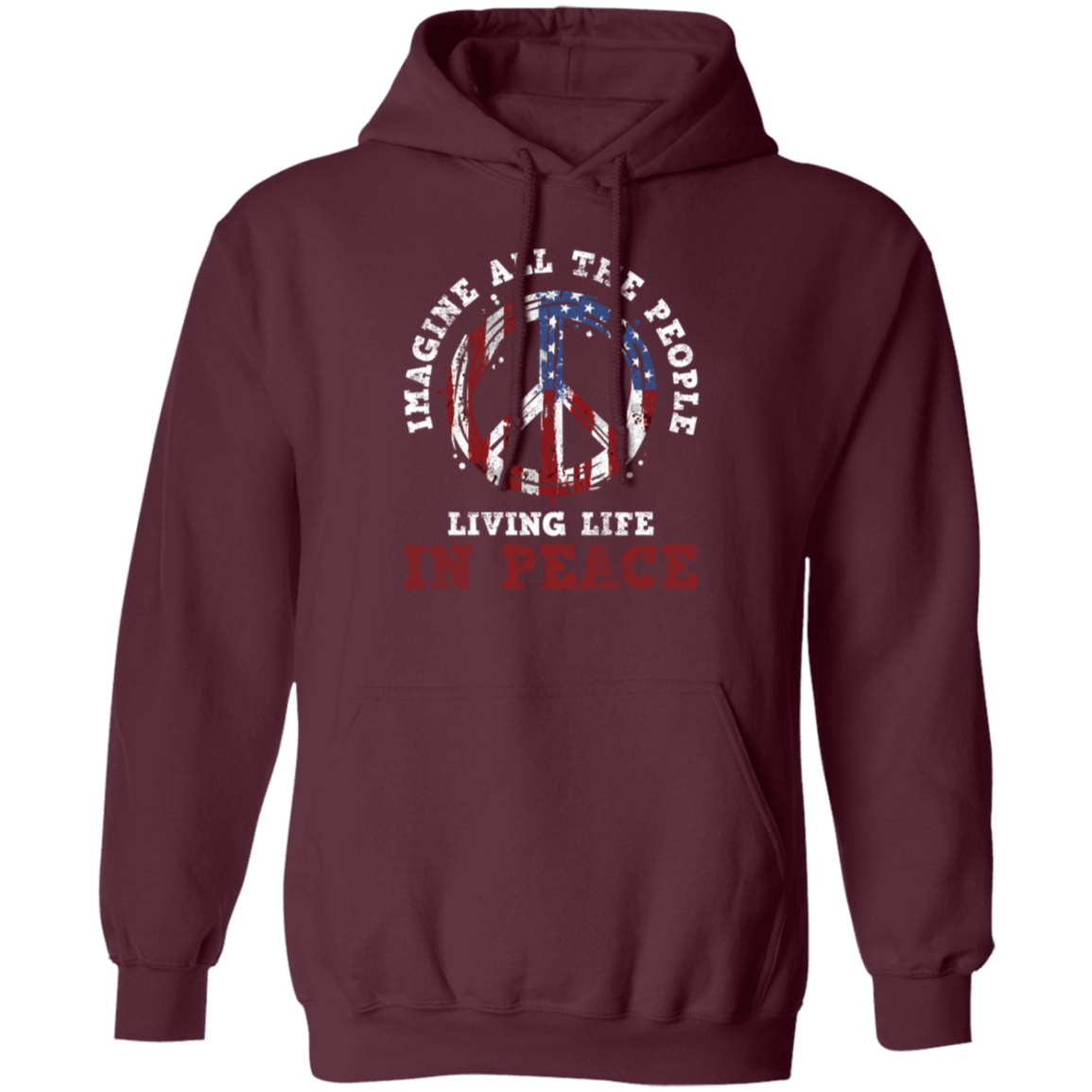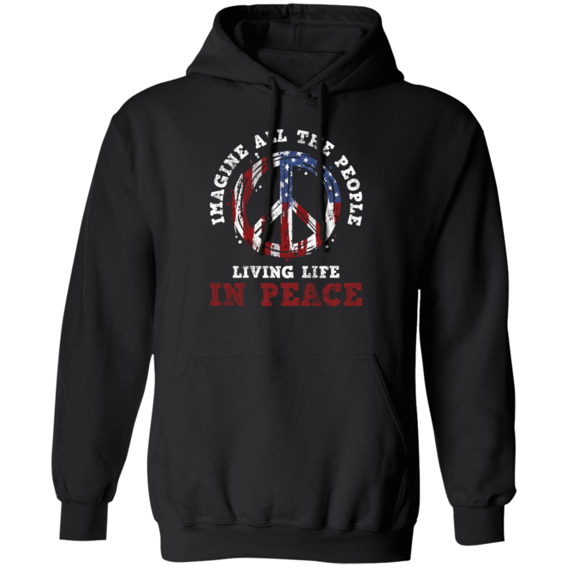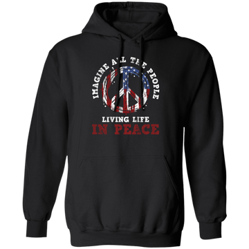 American Flag, Imagine All The People Living Life In Peace, Retro Peace Pullover Hoodie