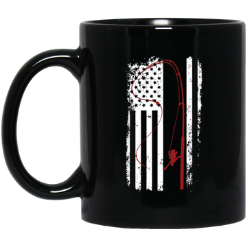 American Flag, Love To Fishing, Retro Fishing Lover, Fishing Lover Black Mug