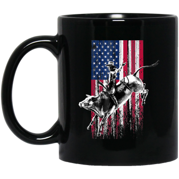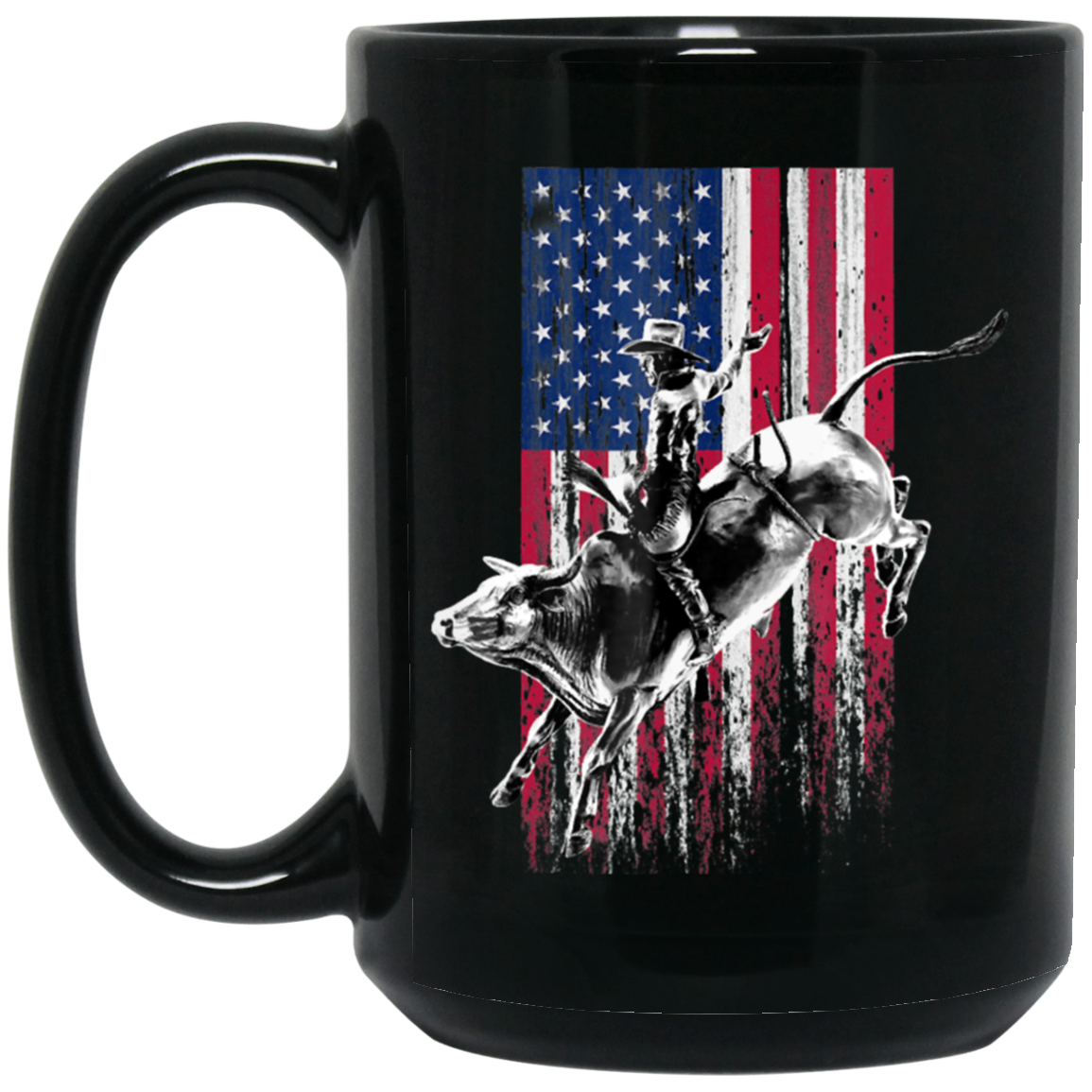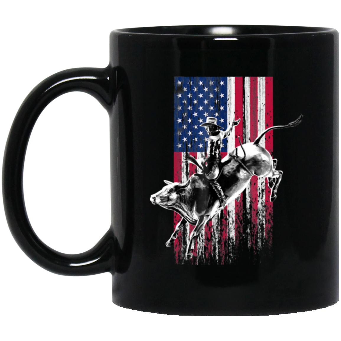 American Flag, Rodeo Bull Rider American Flag Patriotic Cowboys, Best Cowboy Black Mug