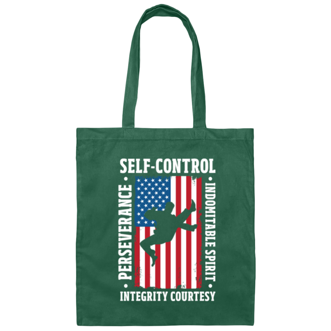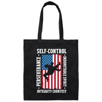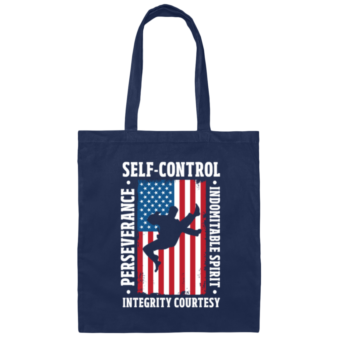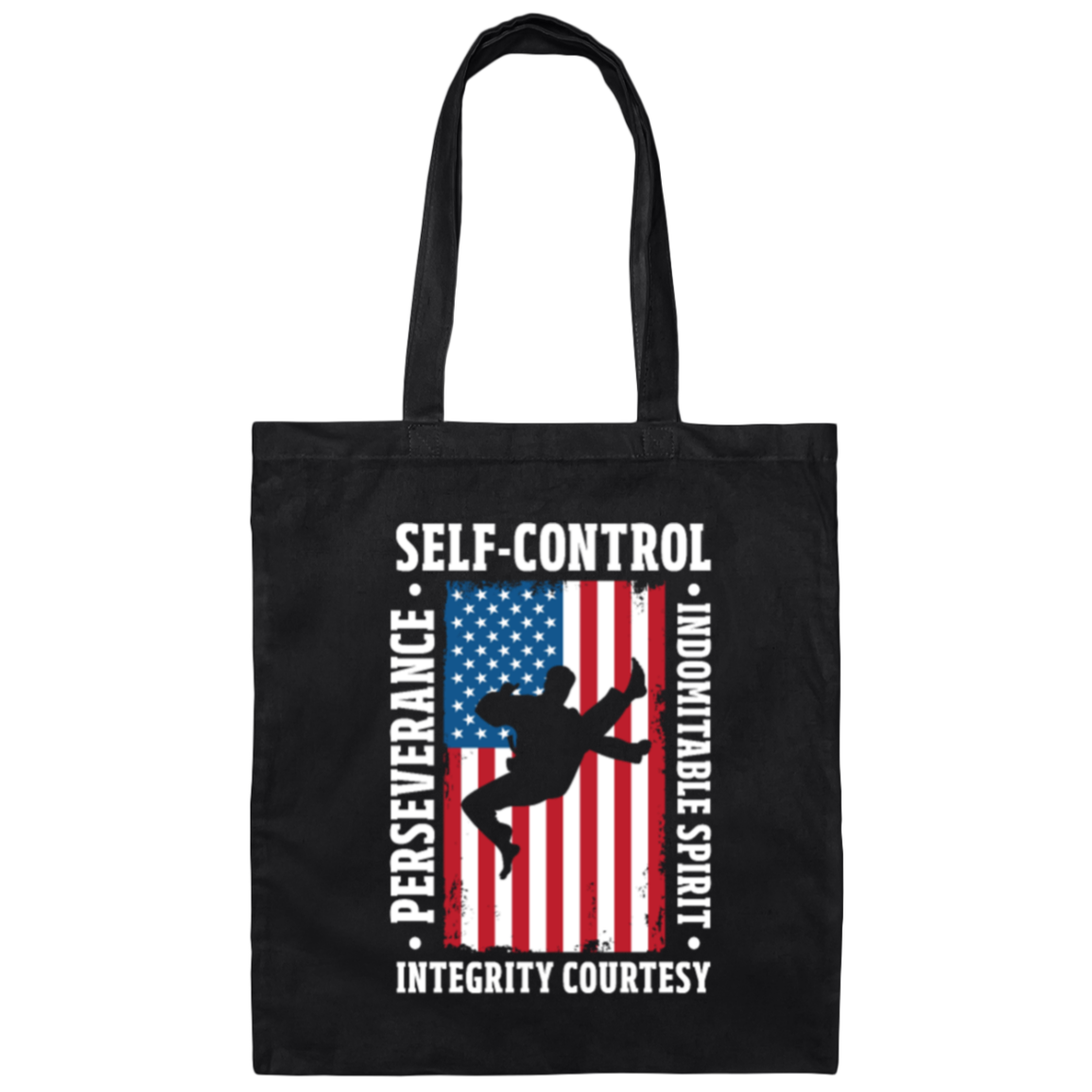 American Taekwondo, Self-Control, Perseverance, Integrity Courtesy, Indomitable Spirit Canvas Tote Bag