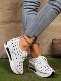 Apricot Cutout Wedge Sneakers: Breathable Comfort with a Thick Sole