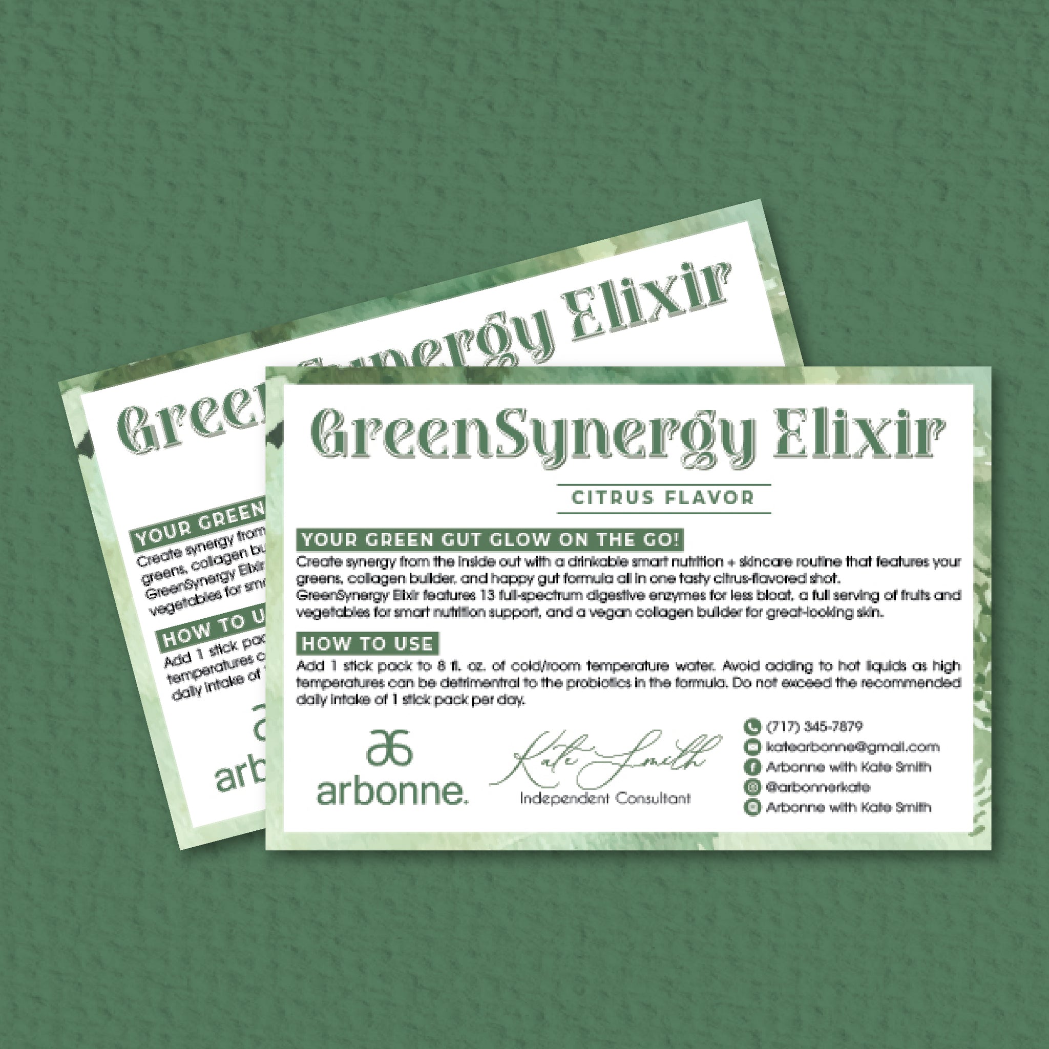 Arbonne GreenSynergy Elixir Card, Personalized Arbonne Business Cards AB138