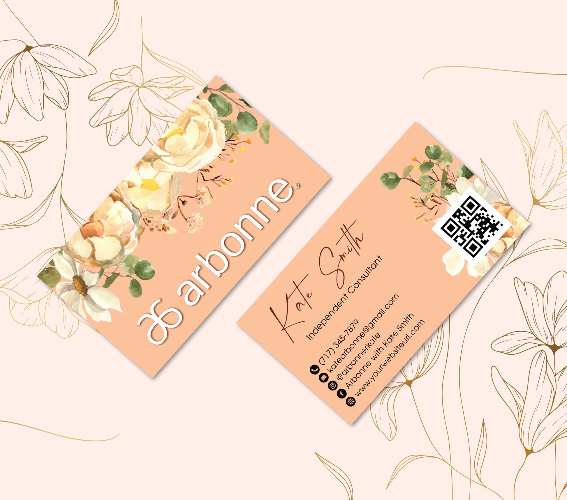 Arbonne Orange Flower Business Card QR Code, Personalized Arbonne Business Cards AB183