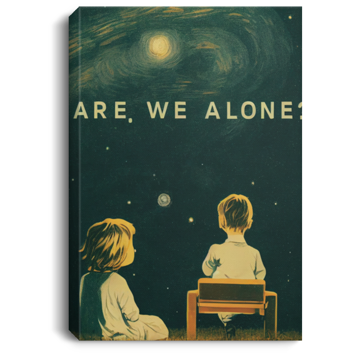 Are We Alone Lonely Young Boy And Girl Sitting Together Next To A Dobsonian Telescope On Starry Night