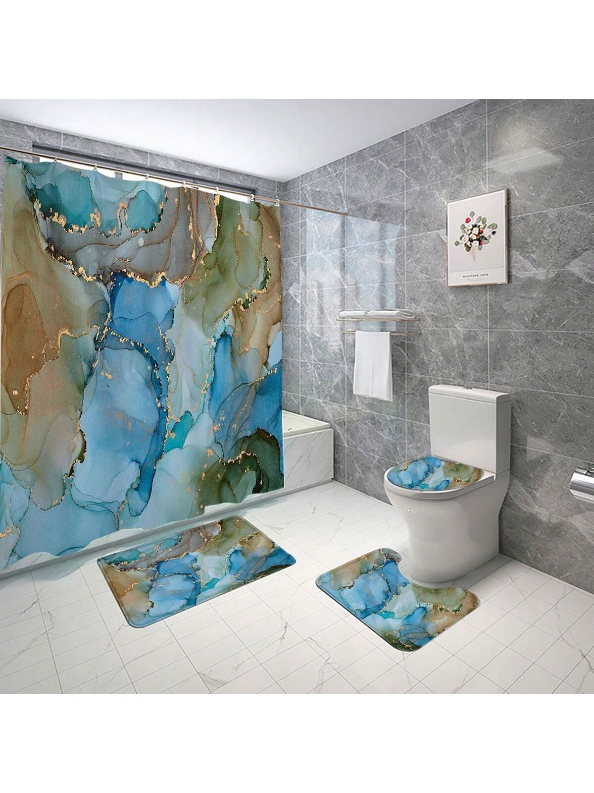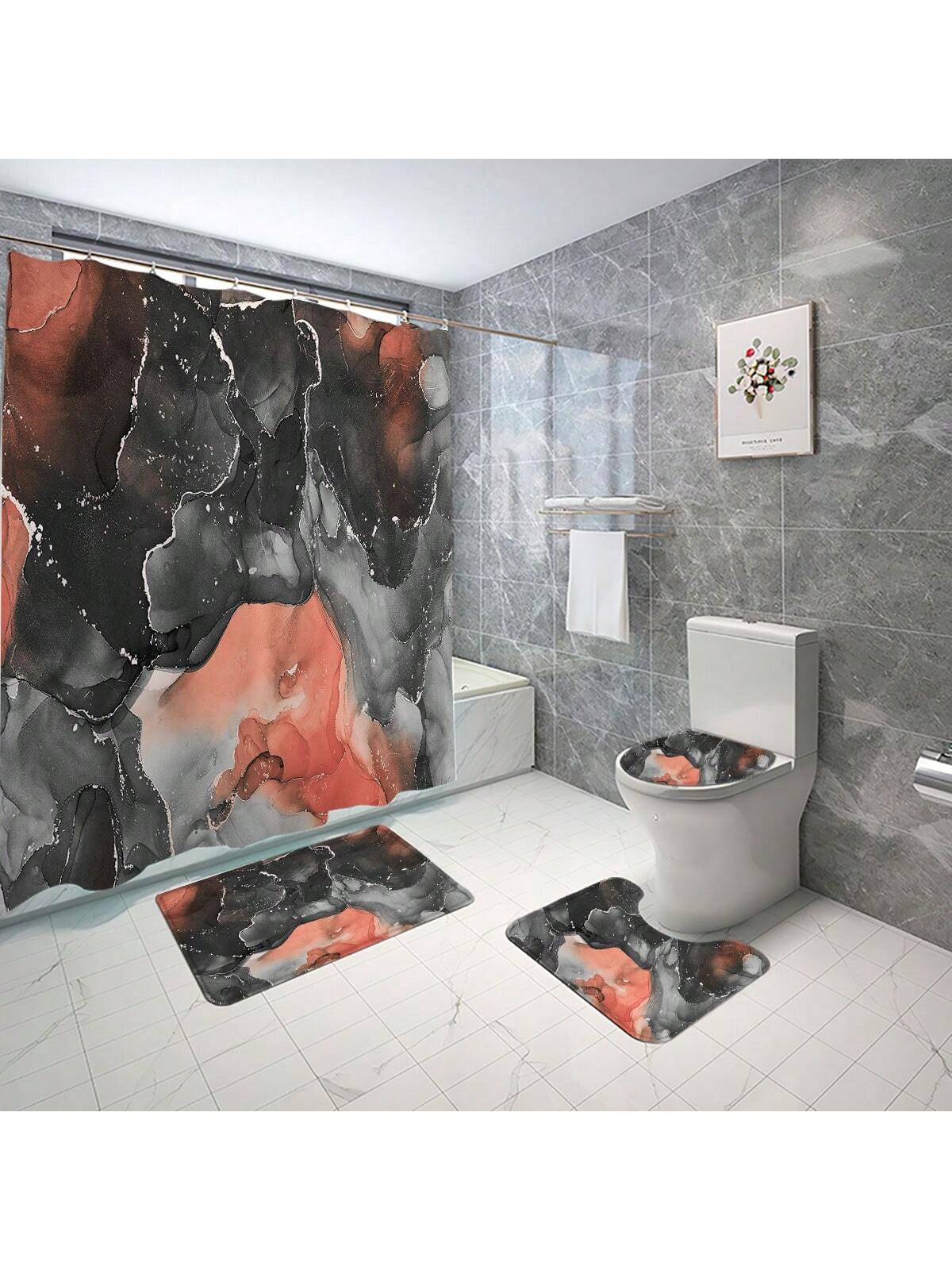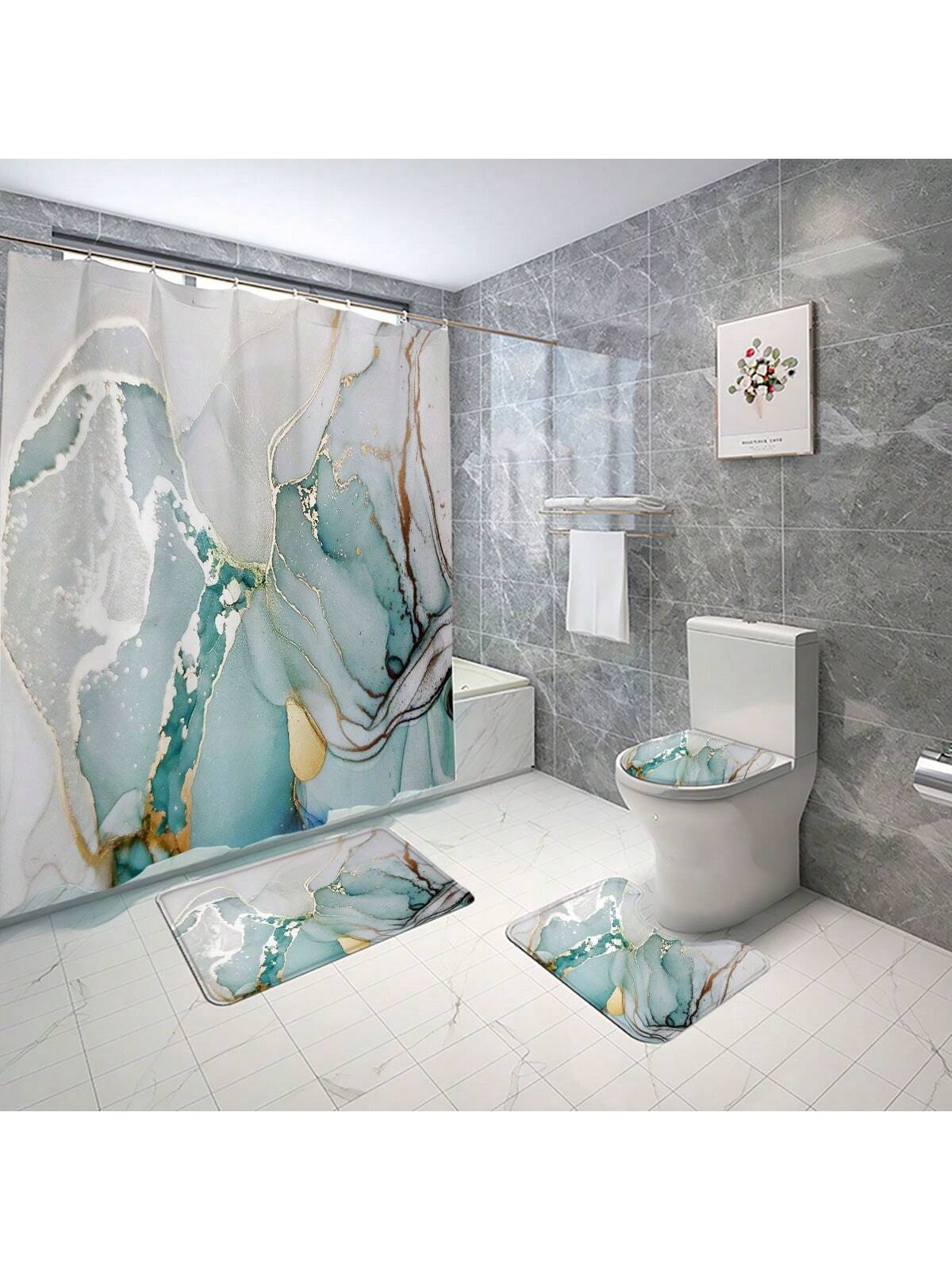 Artistic Elegance: Printed Shower Curtain and Floor Mat 4pcs Set