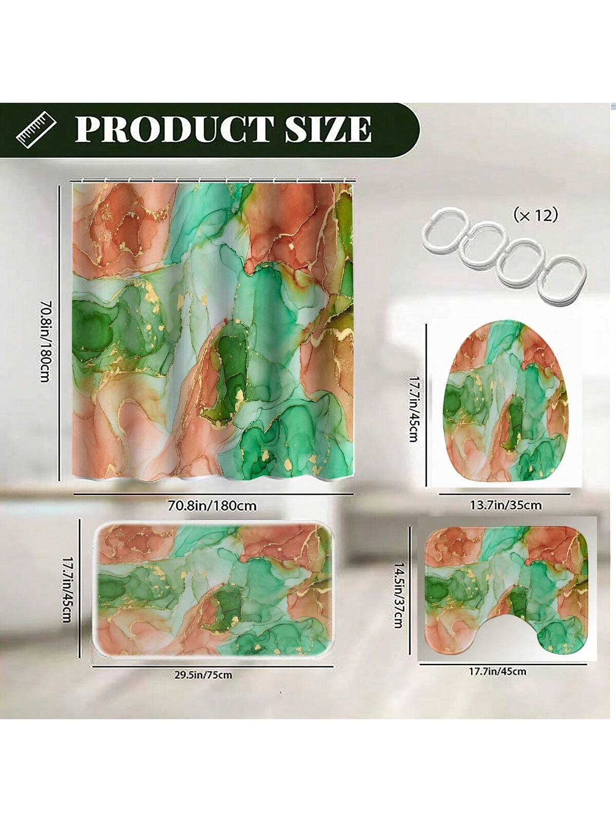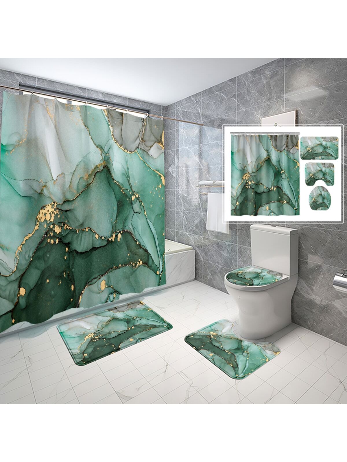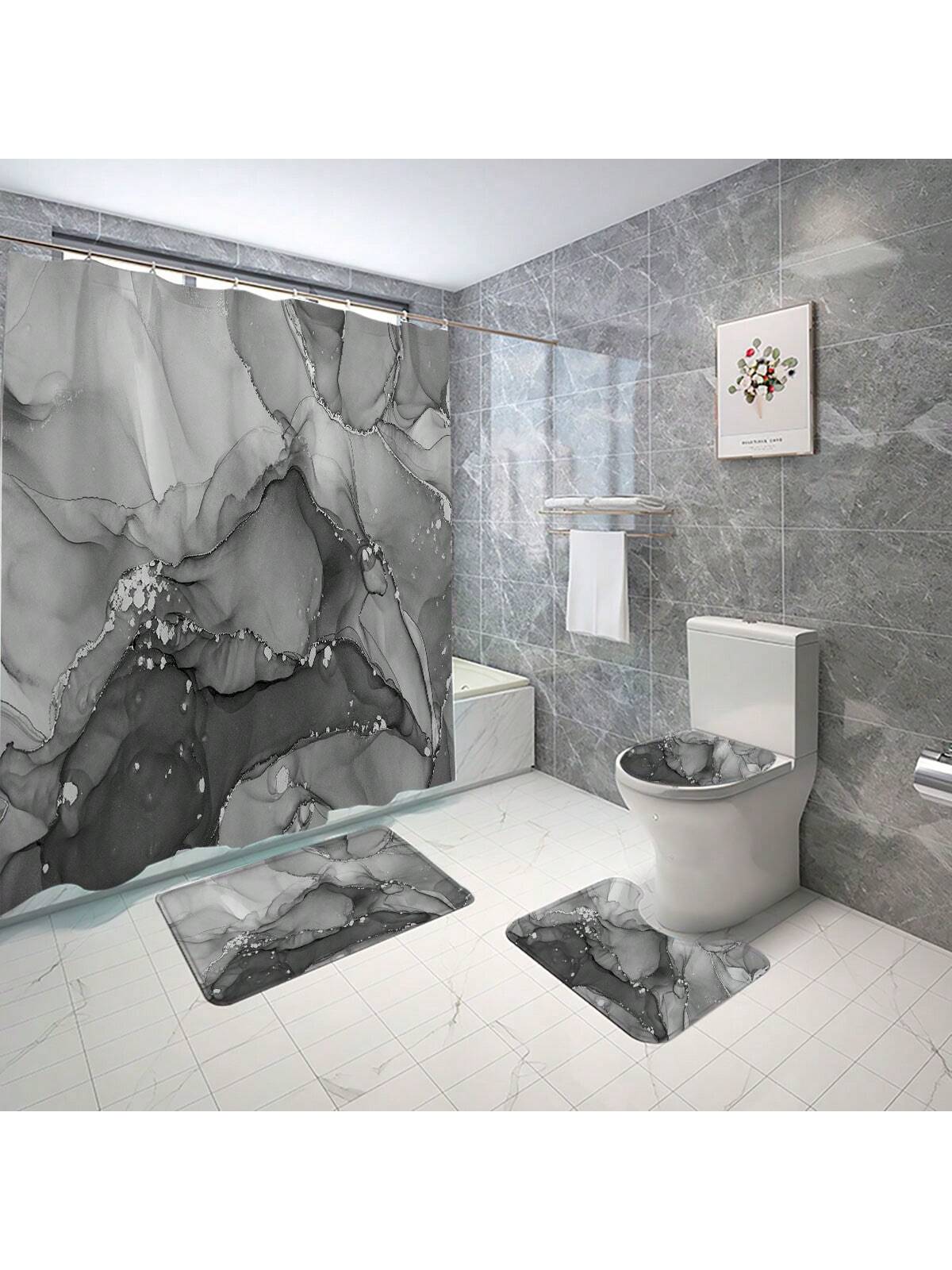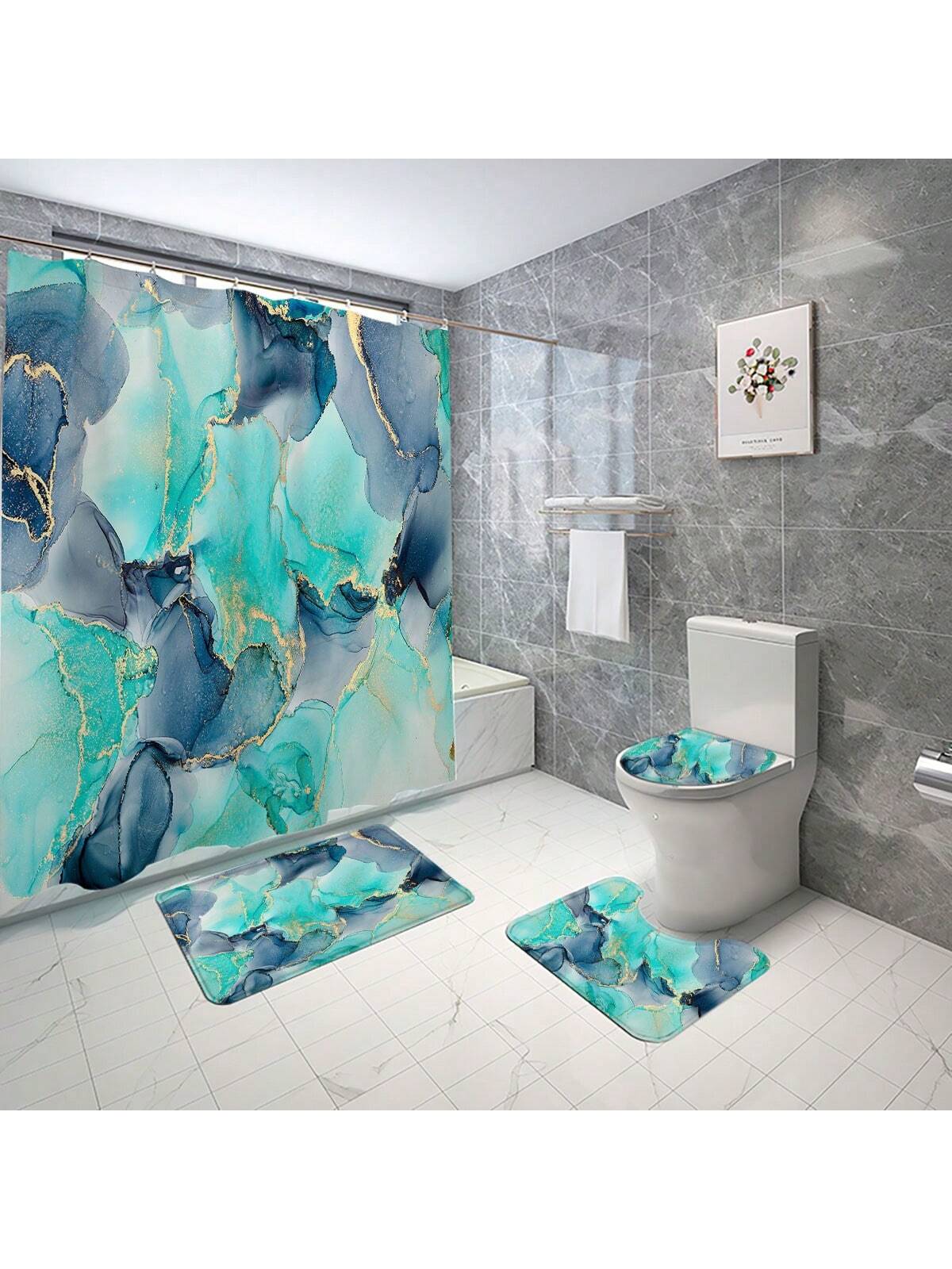 Artistic Elegance: Printed Shower Curtain and Floor Mat 4pcs Set