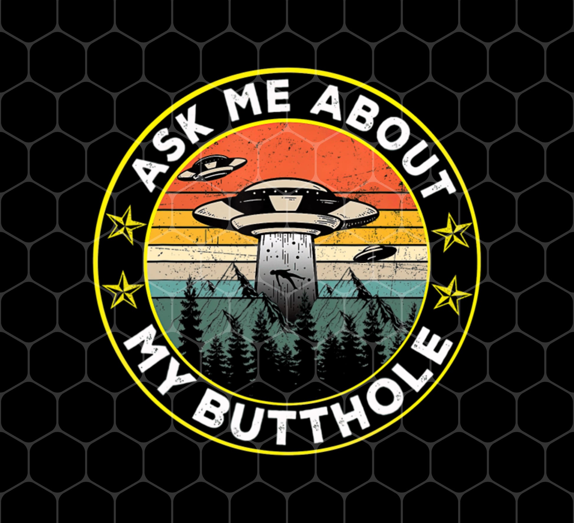 Ask Me About My Butthole Funny UFO Alien Abduction, Png Printable, Digital File