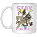 Astronaut Holding A Coffee Cup, Retro Astronaut, Stay Curious White Mug