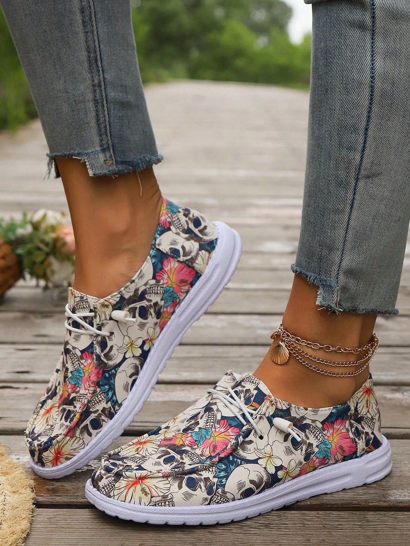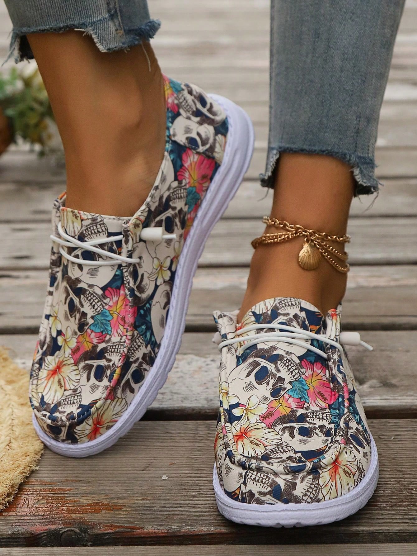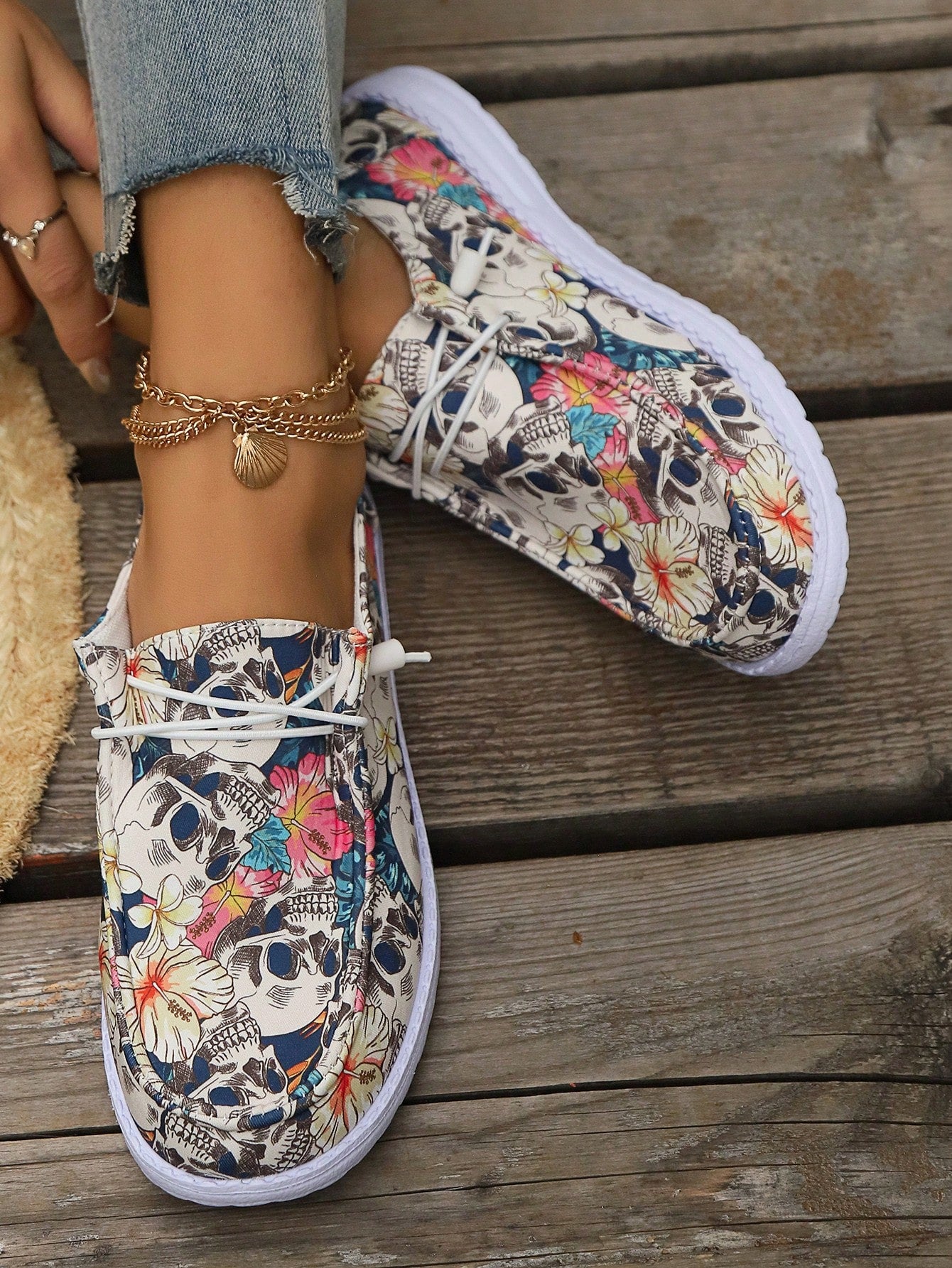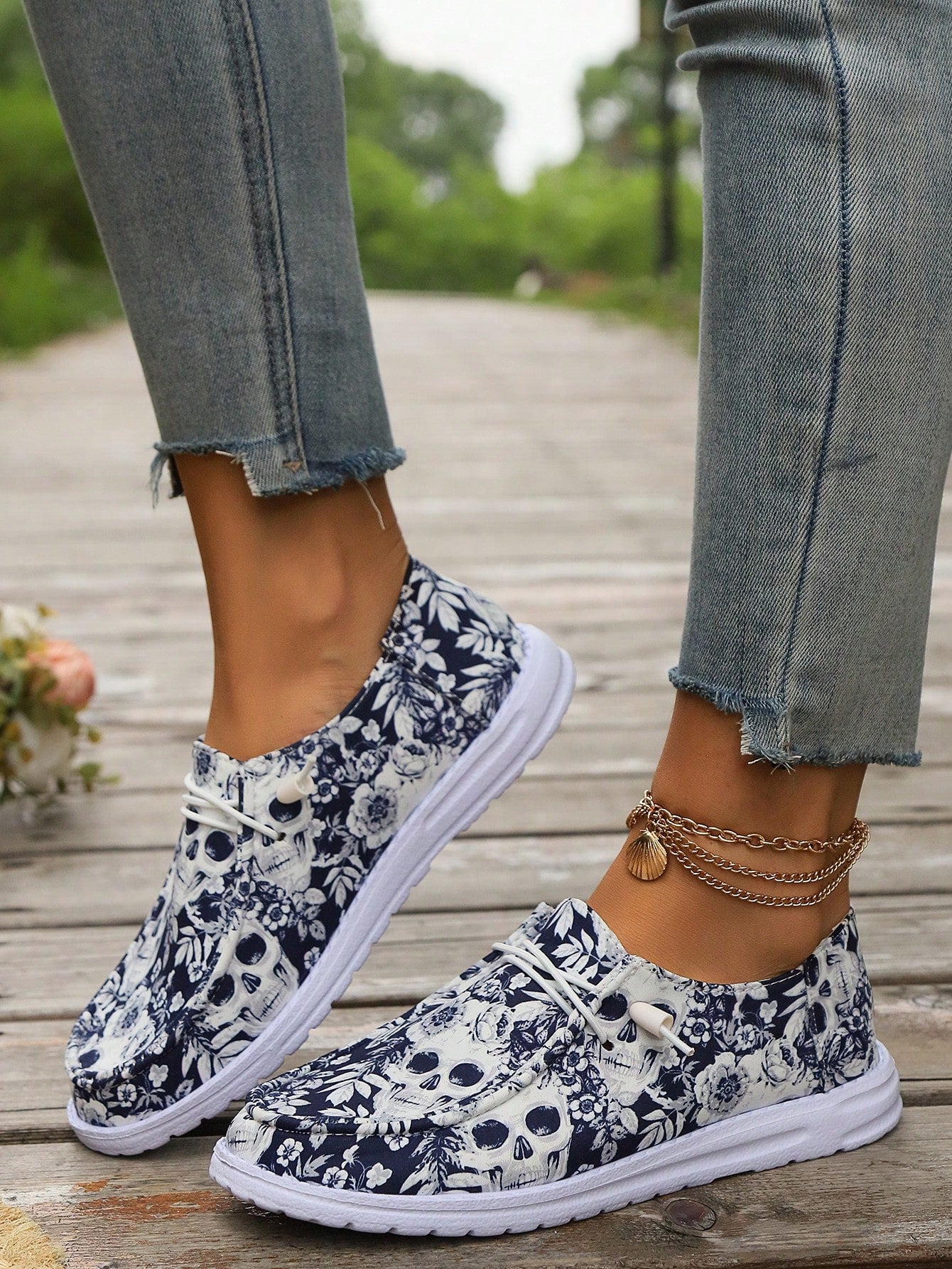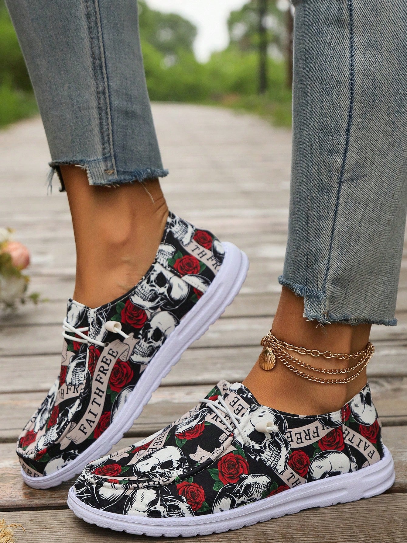 Autumn Halloween Rose Skull Loafers: Fashionable, Lightweight, and Comfortable Casual Sneakers
