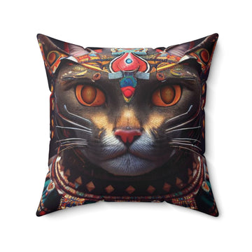 Aztec Cat Pillow, Gift For Cute Cat Lover, Cat Mythology For Pillow Covers, Spun Polyester Square Pillow