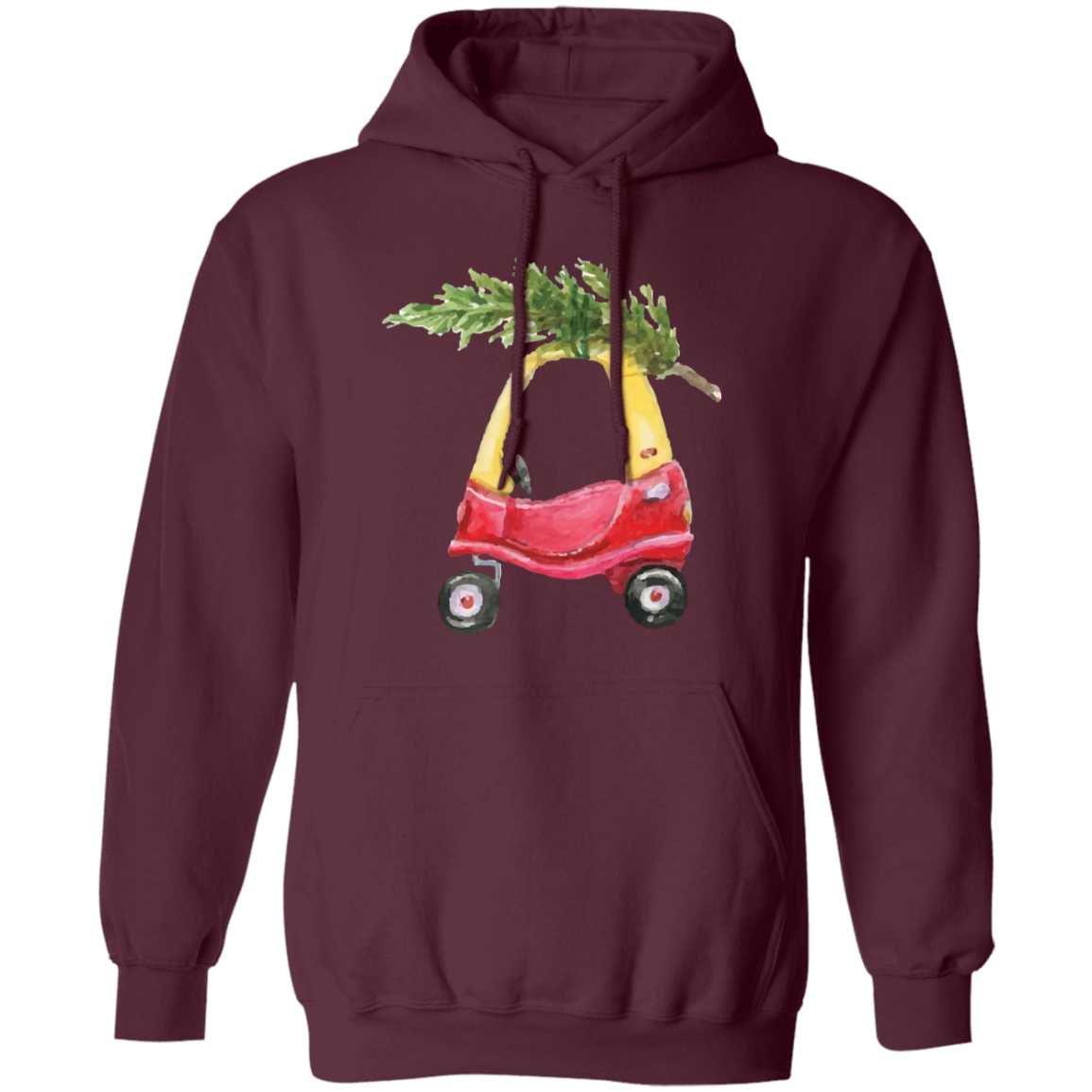Baby Car Watercolor, Car Bring Xmas Tree, Cute Xmas Car, Merry Christmas, Trendy Chrismas Pullover Hoodie