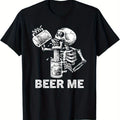 Bare Bones: Men's Skeleton Print Cotton Graphic Tee for Halloween & Outdoor Fun
