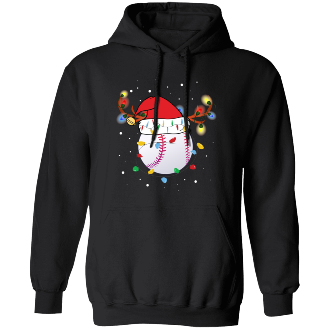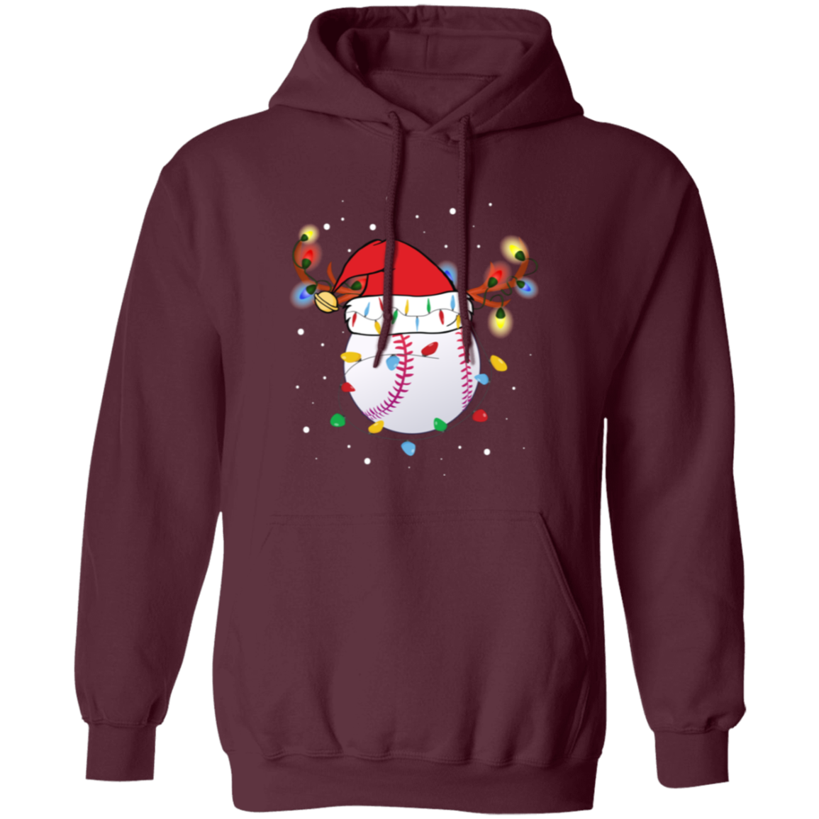 Baseball Christmas, Bright Light Line, Reindeer Xmas Horn, Merry Christmas, Trendy Christmas Pullover Hoodie