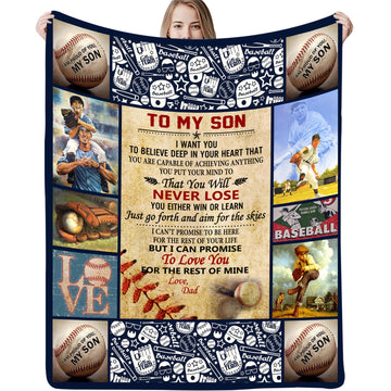 Baseball Print Blanket, Letter To Son Throw Blanket, Blanket From Daddy