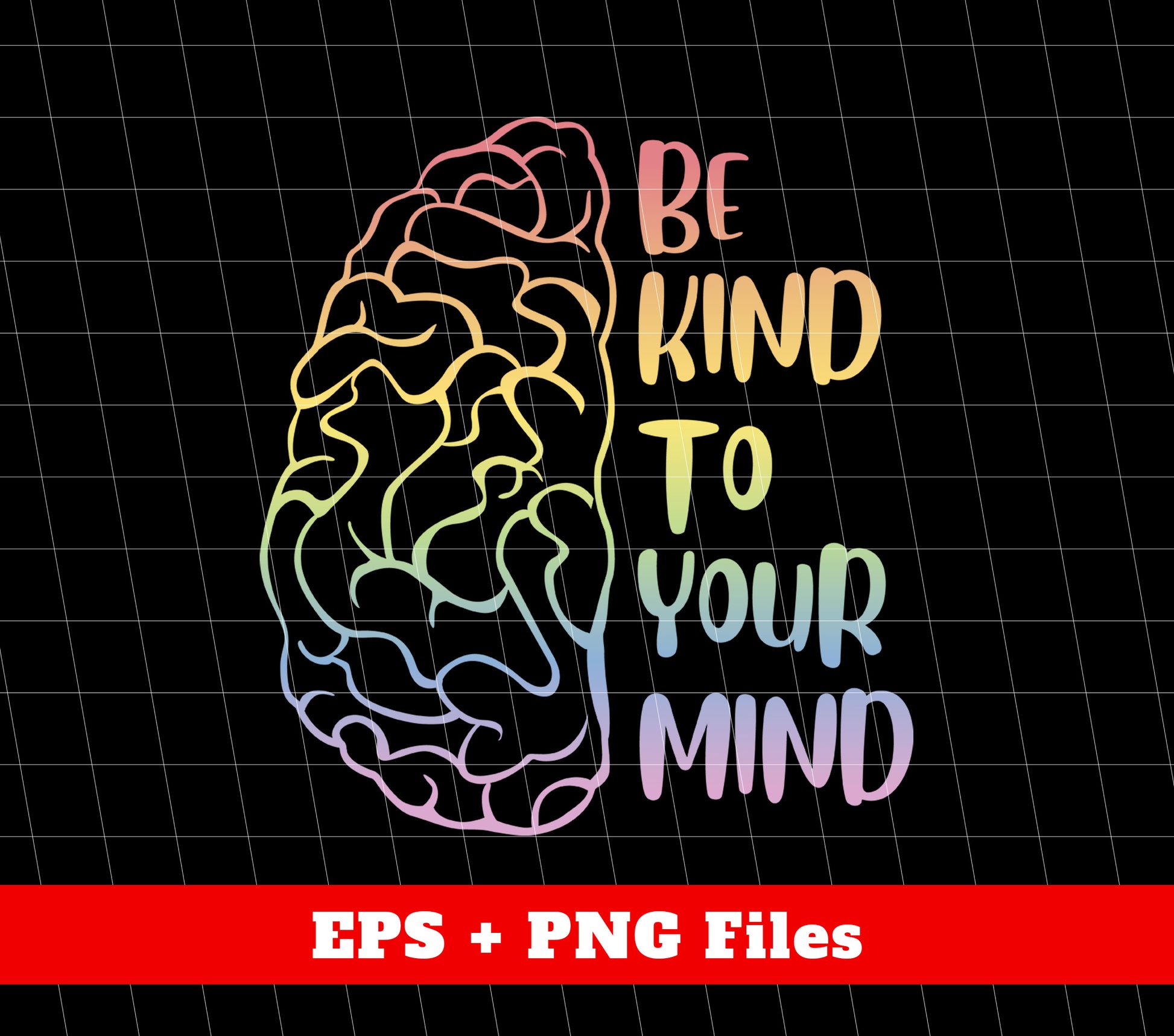 Be Kind To Your Minds, Rainbow Brain, Awareness Brain, Digital Files, Png Sublimation