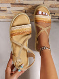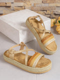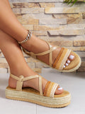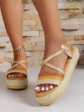 Beach Vacation Style: Woven Details One Line Buckle Design Sandals With Thick Soled Wedge Heel - Random Pattern And Texture