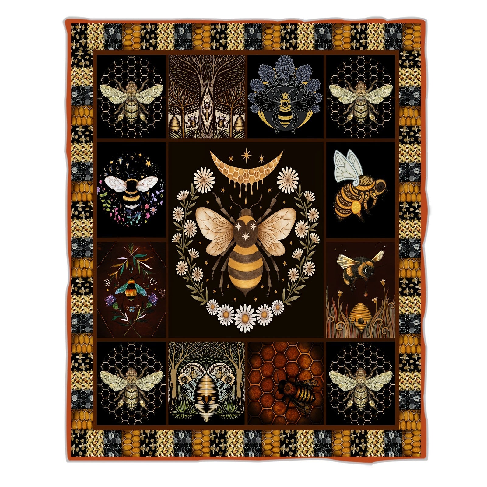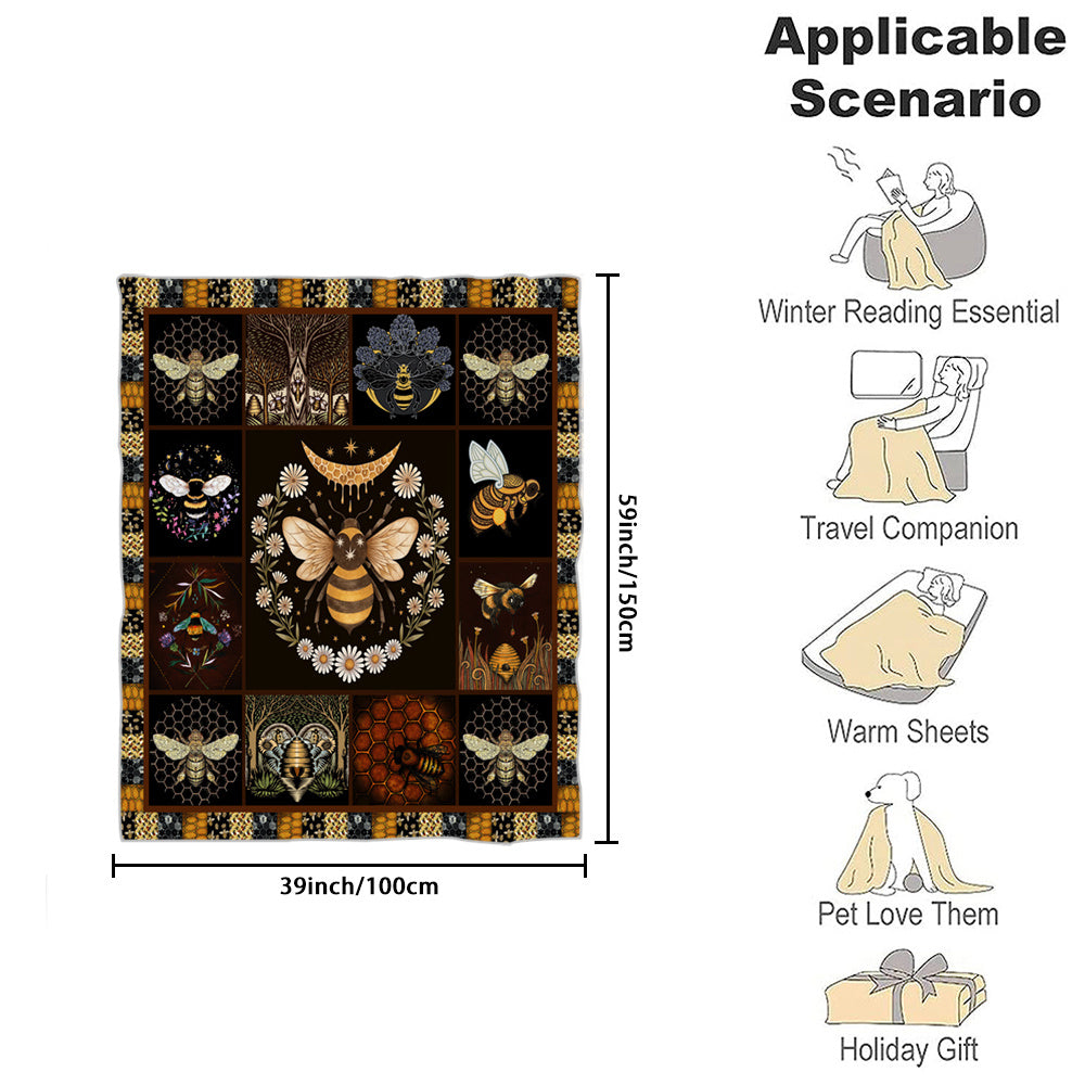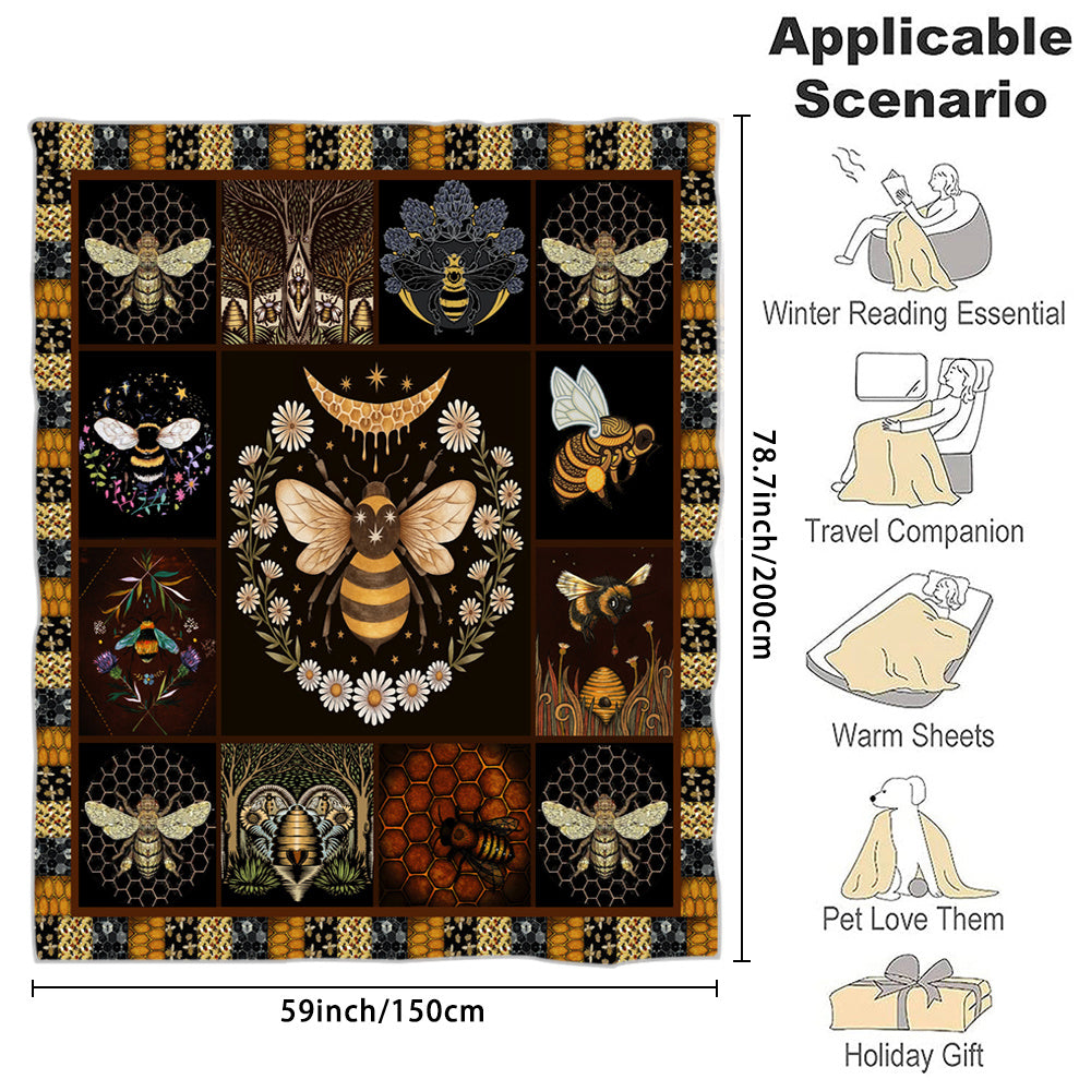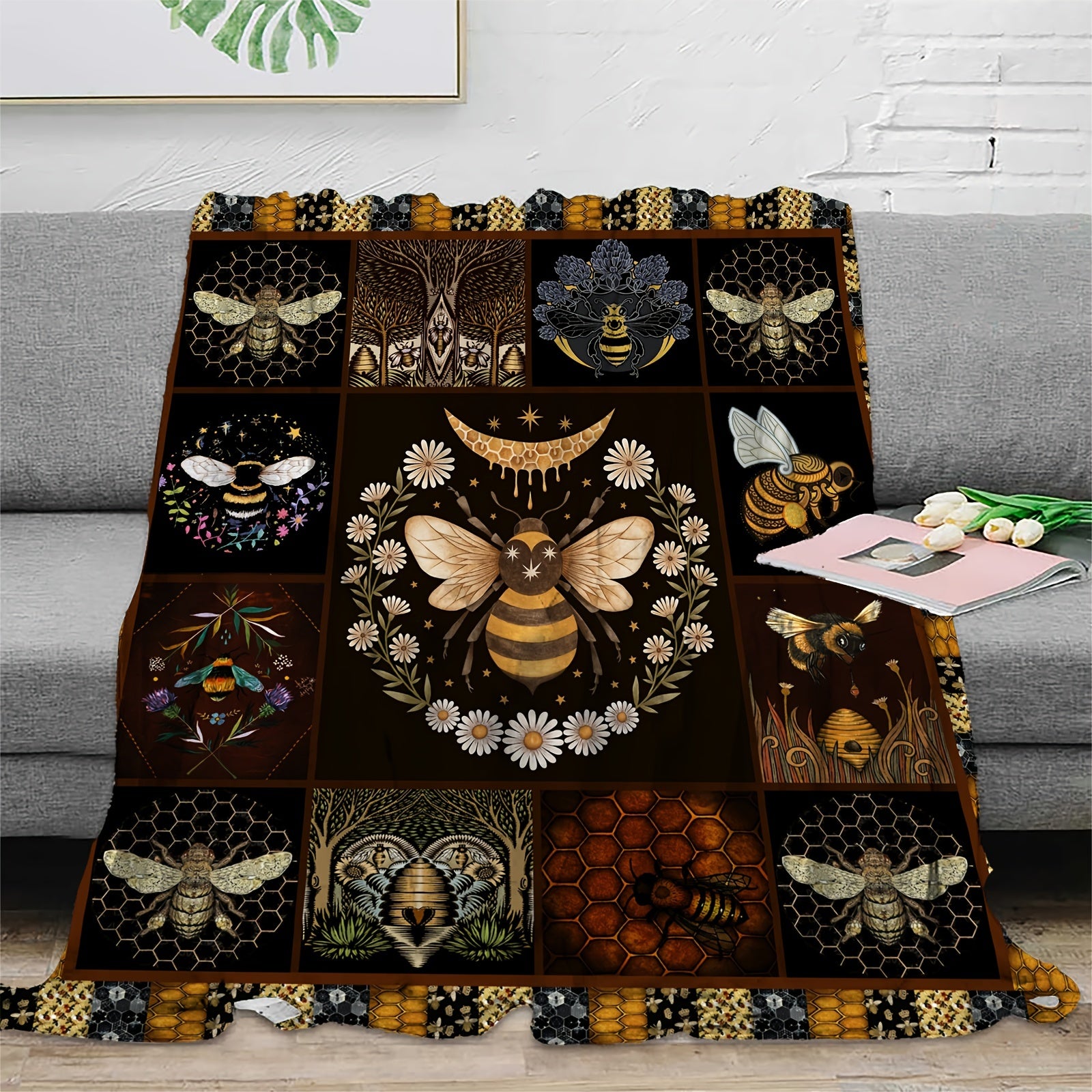 Bee Lover Blanket, Vintage Bee Pattern Blanket, Flannel Throw Blanket
