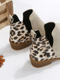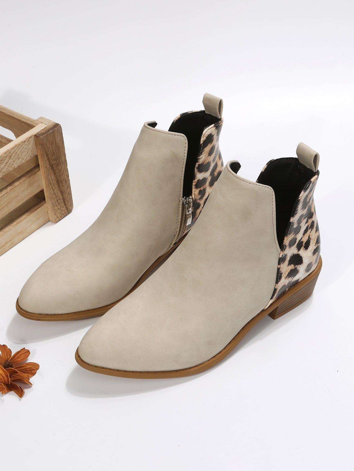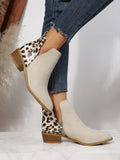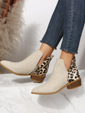 Beige Leopard Print Chunky Heeled Booties: Sleek & Stylish Short Boots
