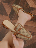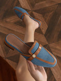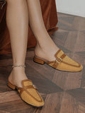 Mules for Women. These stylish mules feature a chic belted design and durable canvas material, providing both style and functionality. Perfect for any occasion, these mules will add a touch of elegance to any outfit. Don't sacrifice fashion for comfort - get the best of both worlds with Belted Beauty."