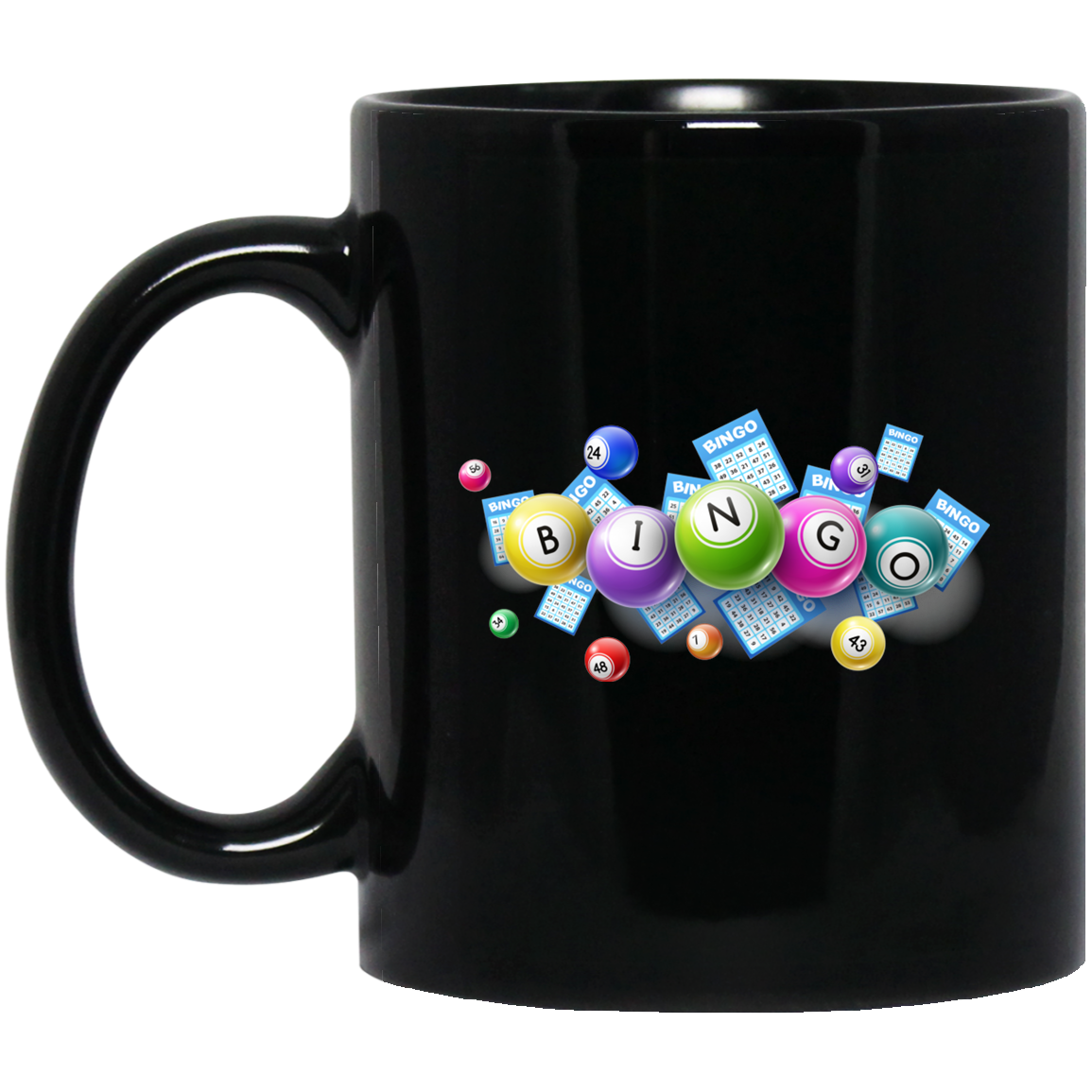 Bingo Balls And Bingo Tickets, Lottery Ticket, Win Bingo Black Mug