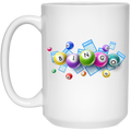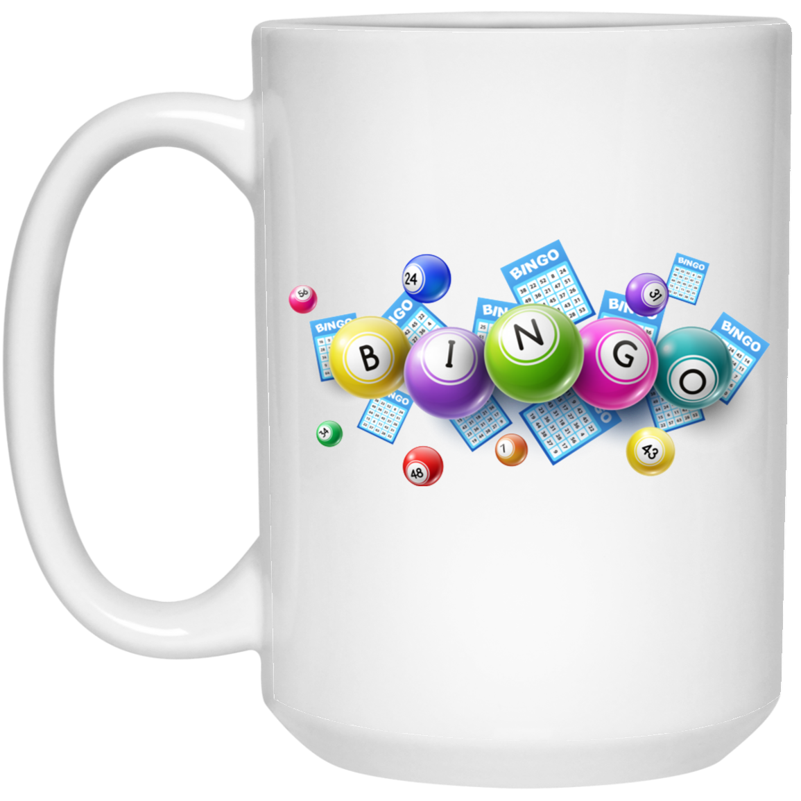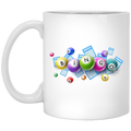 Bingo Balls And Bingo Tickets, Lottery Ticket, Win Bingo White Mug